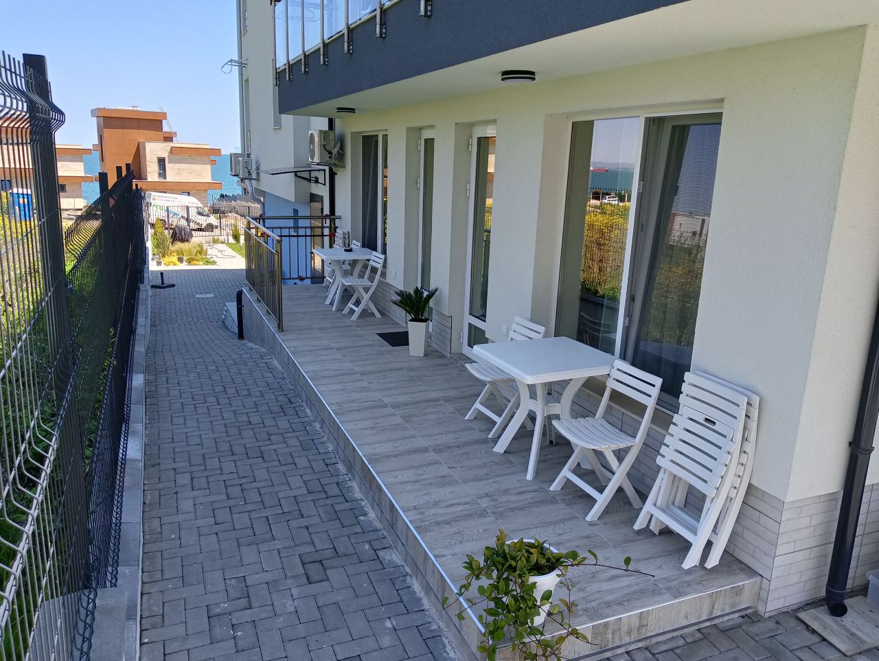 На ваше разположение е и просторна лятна градина с морски изглед, където удобно можете да изпиете своето сутрешно кафе - комплимент от нас за вашата удобна почивка предлагаме безплатен паркинг и лесен достъп до близките магазини, аптека, детска площадка и рибни ресторантчета.