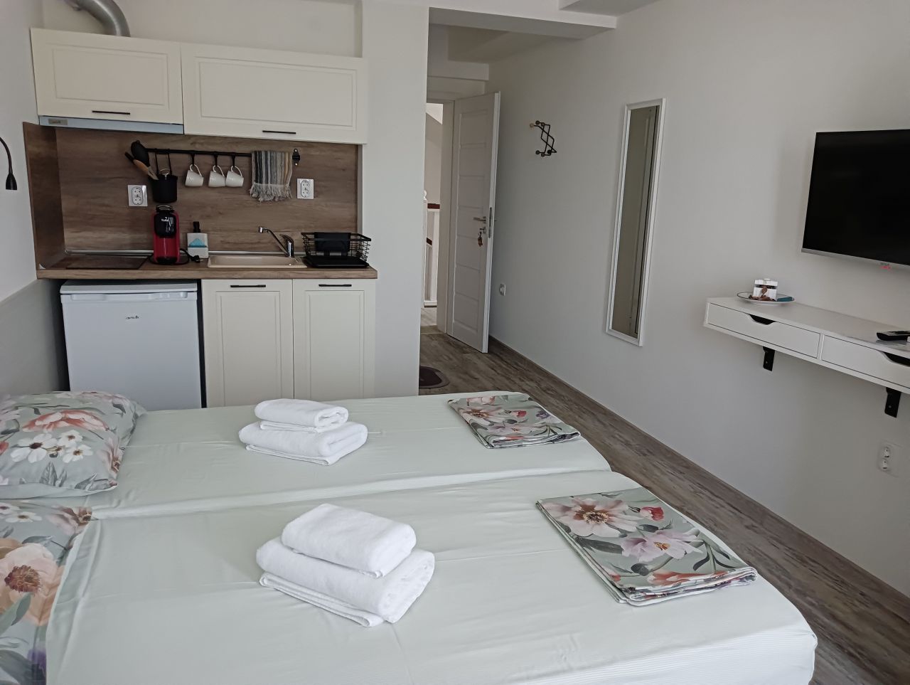 Разположена само на 50 метра от морския бряг, Аква Виктория Ви предоставя уникалната възможност да се насладите на морската красота и свежия въздух, без да се отдалечавате от удобствата на дома. Вилата разполага с пет стилно обзаведени студиа, всяко от които е проектирано с внимание към детайла, за да отговори на нуждите на нашите гости. Студиата са снабдени с всичко необходимо за вашия комфорт – климатик, LCD телевизор, безплатен Wi-Fi, кухненски кът с кафемашина, хладилник и електрически плот.