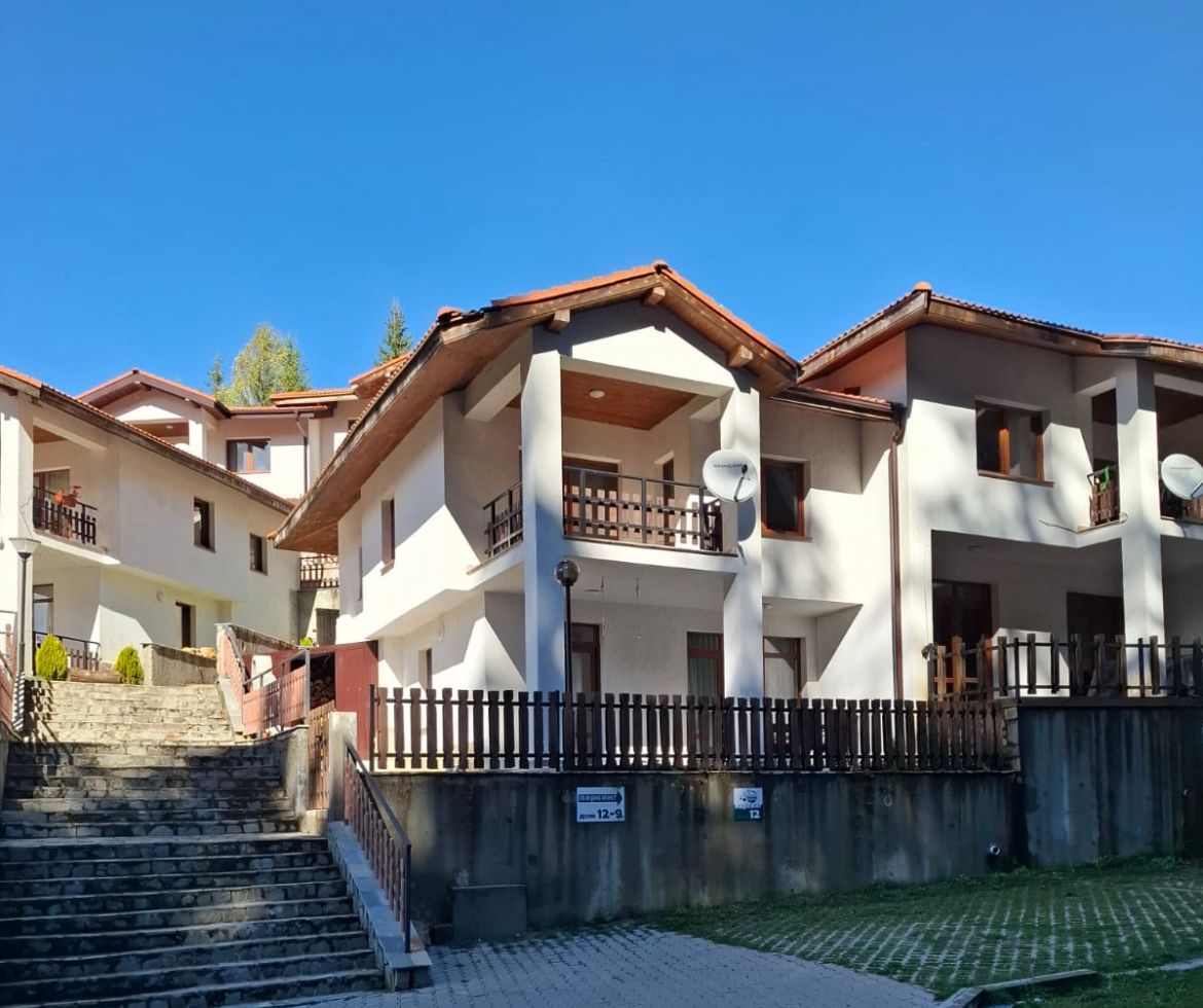 – Втори етаж: две спални, всяка със собствена баня и сешоар, както и просторна тераса с прекрасна панорамна гледка към планината.