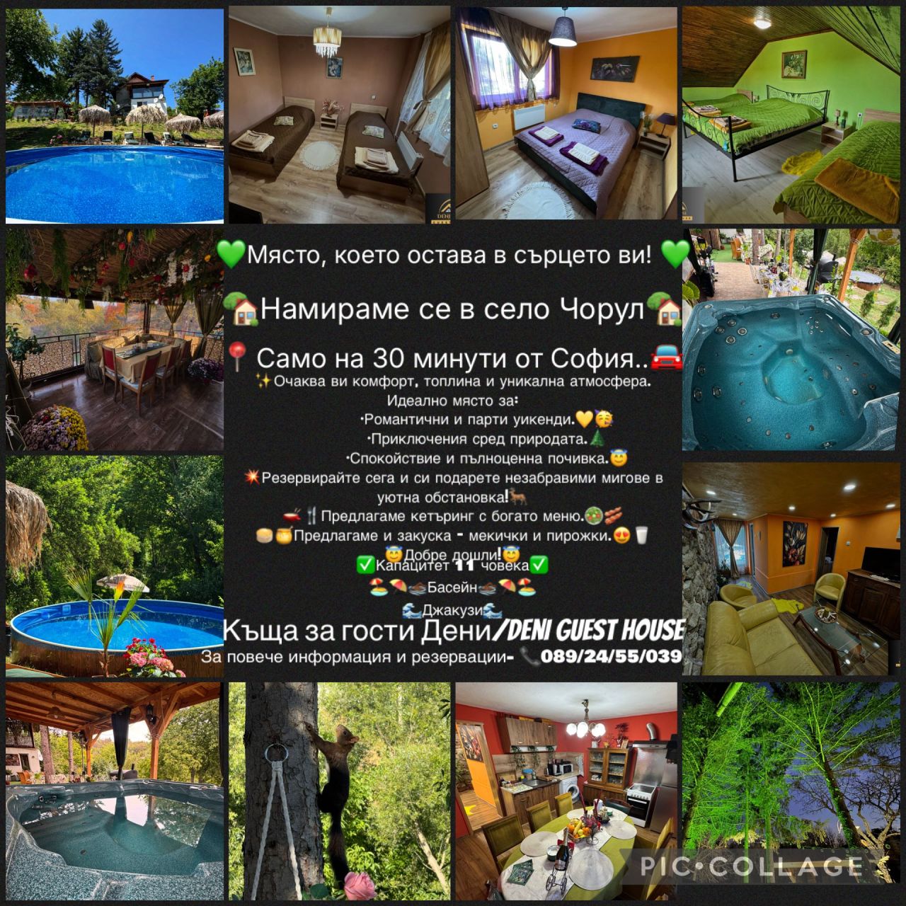Къща Дени се намира в село Чорул, само на 40 км от София и на 20 км от Сърбия. Подходяща е за 8+3 души. На своите гости предлага: