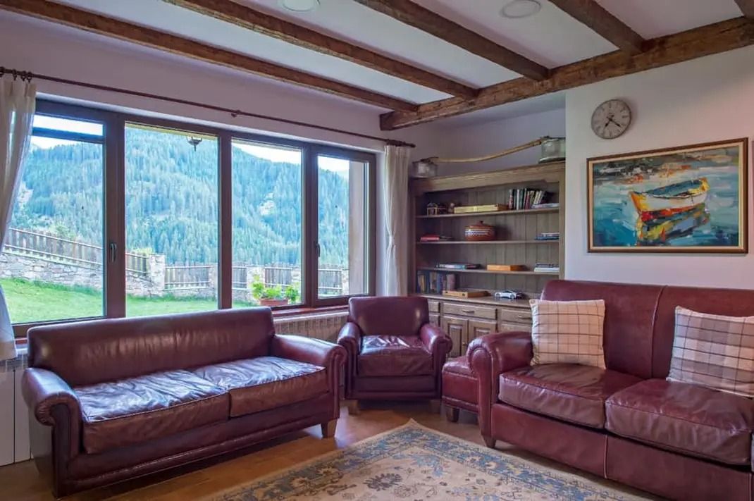- Просторна дневна стая с камина и изключителна планинска гледка