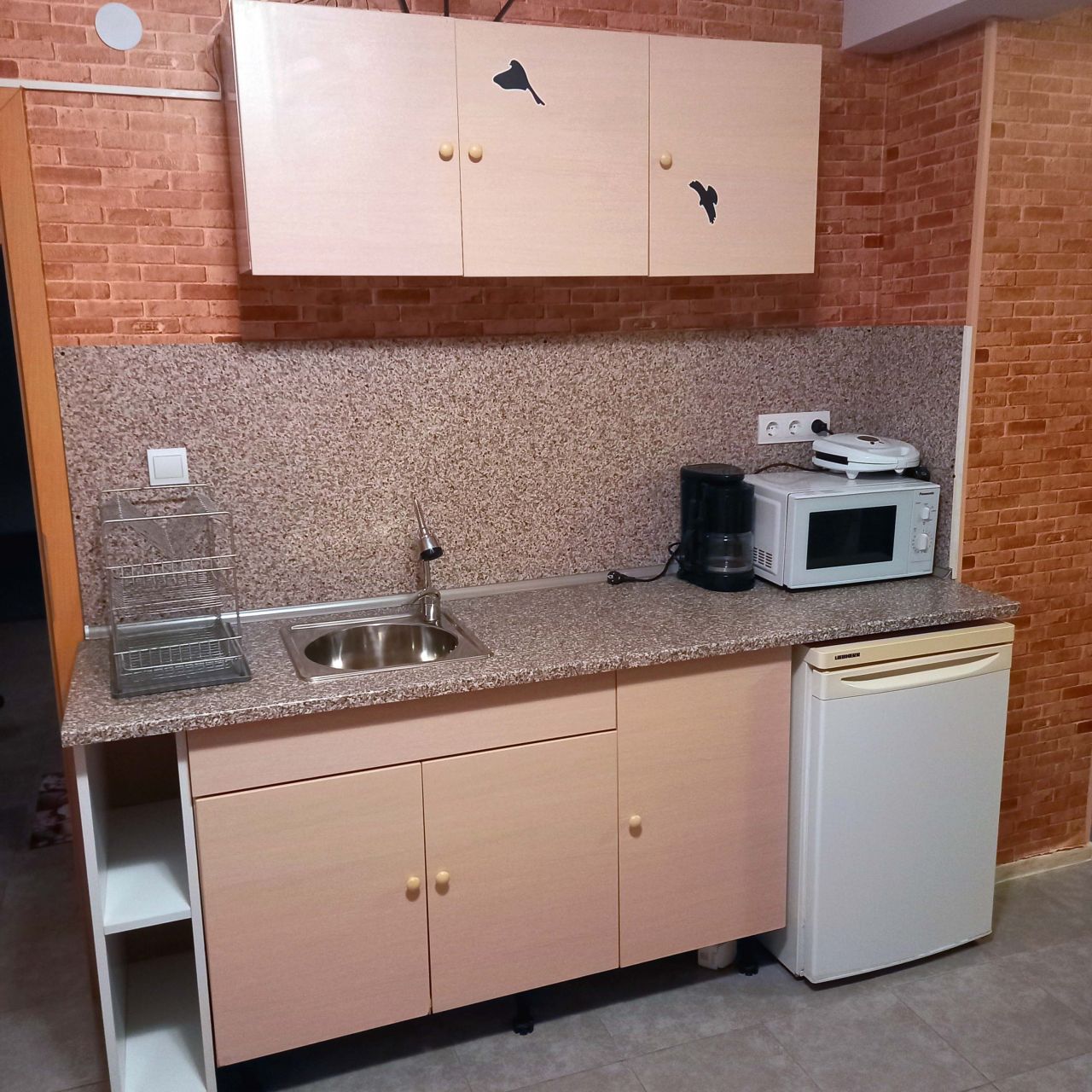 Също така има кухненски кът оборудван с посуда, кафе машина, микровълнова печка, сандвич тостер. Самостоятелен санитарен възел, Wi-Fi.
