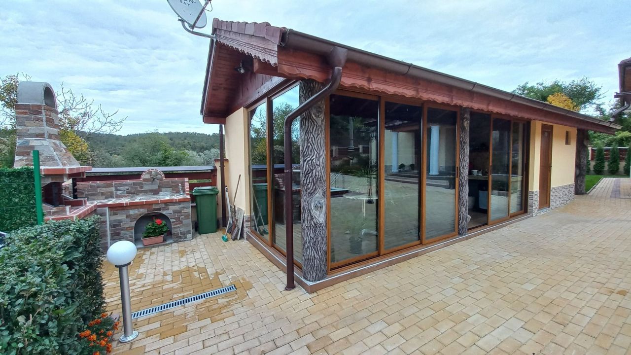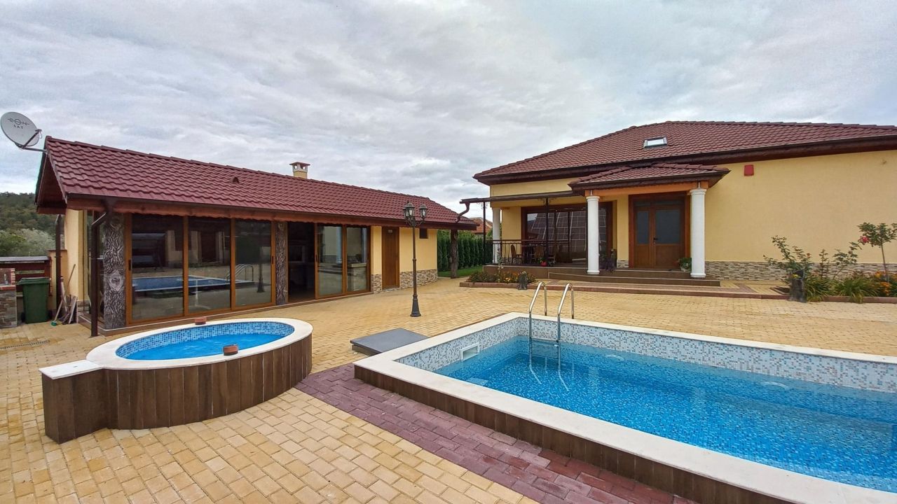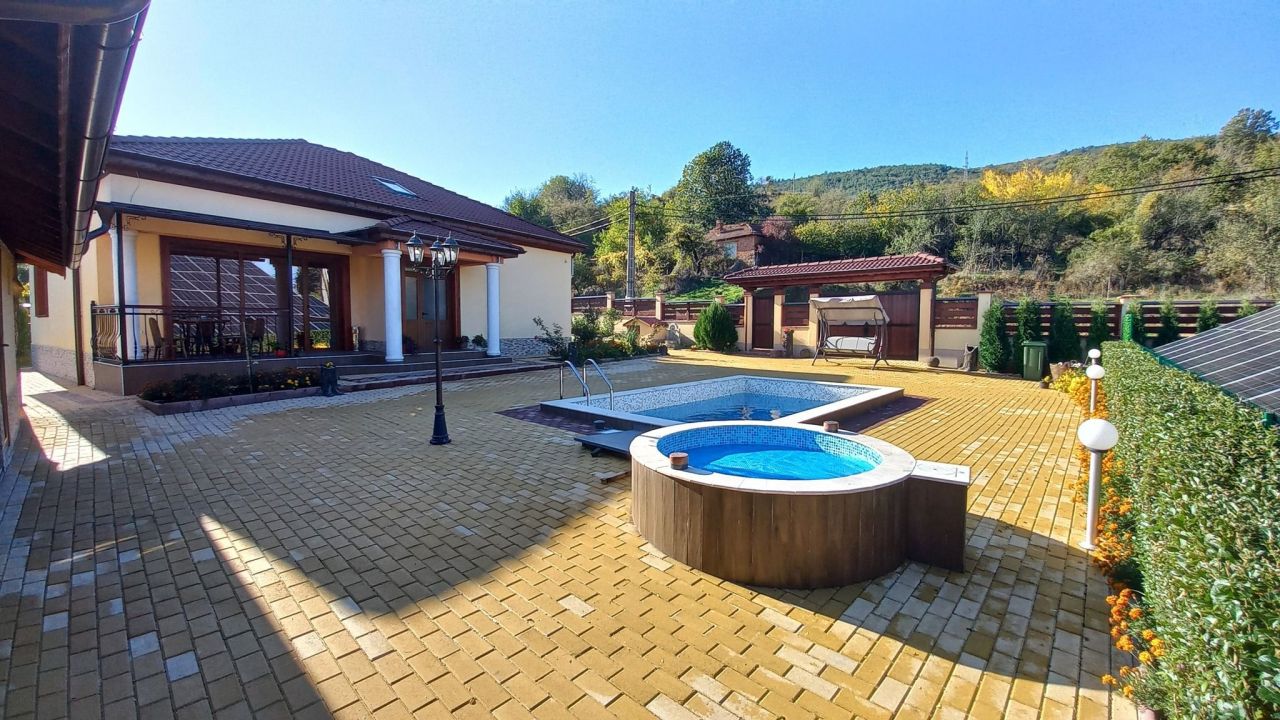 В къщата има още сауна, джакузи, басейн, барбекю.