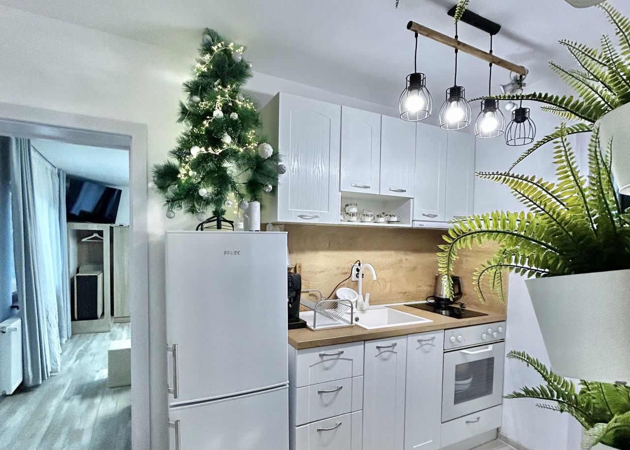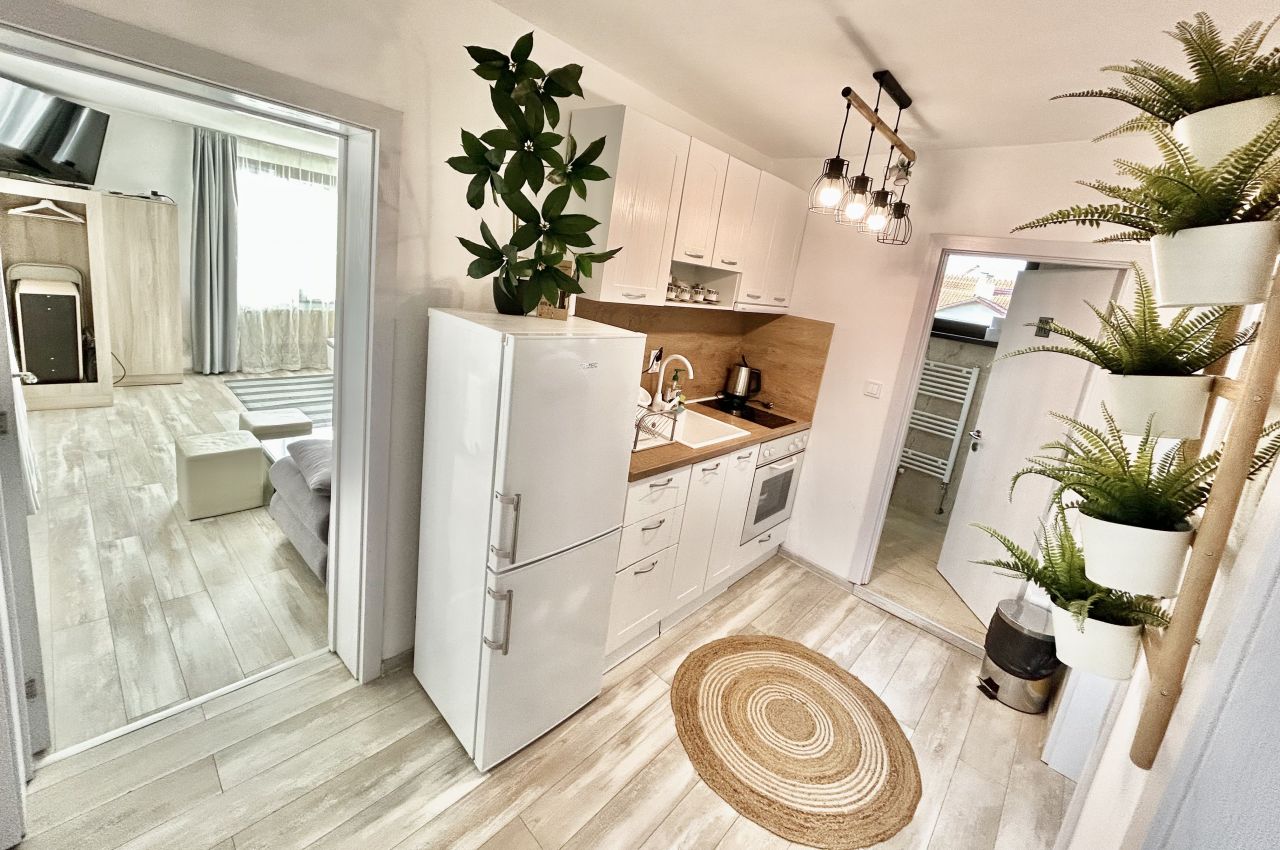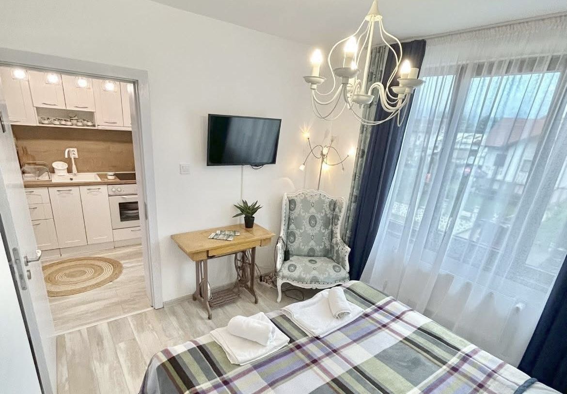 Има кухня (кухненско оборудване - хладилник, готварска печка, котлони, ел. кана за гореща вода, кафе машина, скара, прибори и посуда).