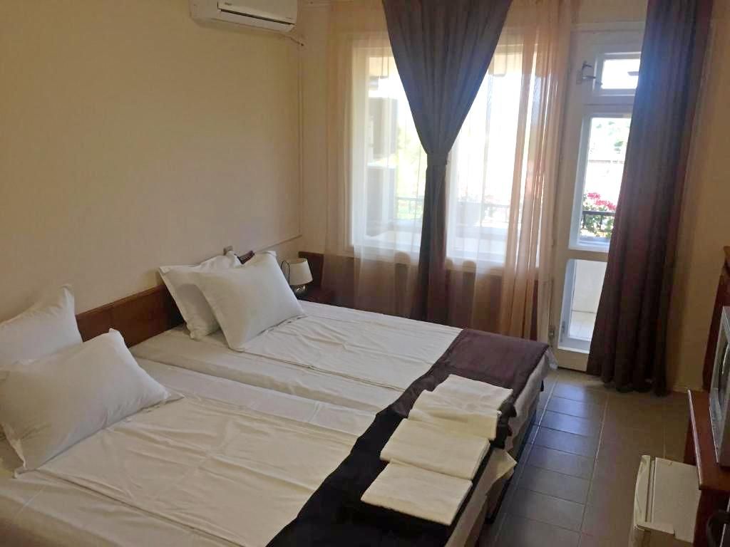 - тройна стая с две легла и разтегателен фотьойл, тераса, хладилник, телевизор, климатик, антре със закачалки и гардероб, и самостоятелен санитарен възел.