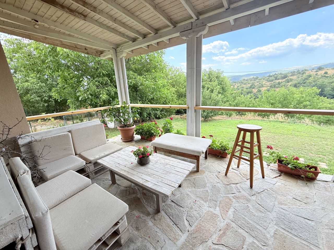 Къщата разполага с две спални 2+1, две бани, дневна с камина и кухненски бокс и лятна кухня с голяма веранда.
