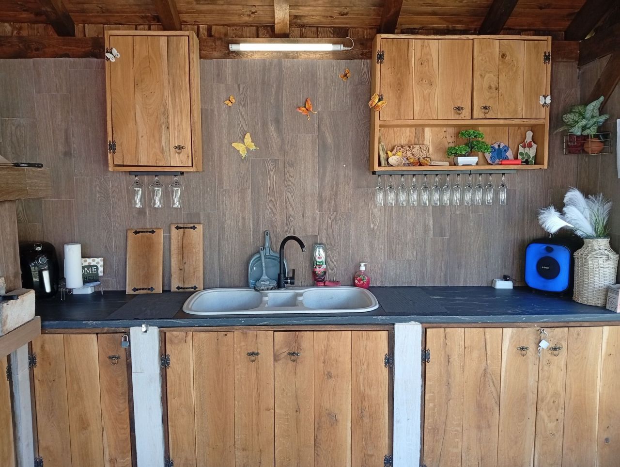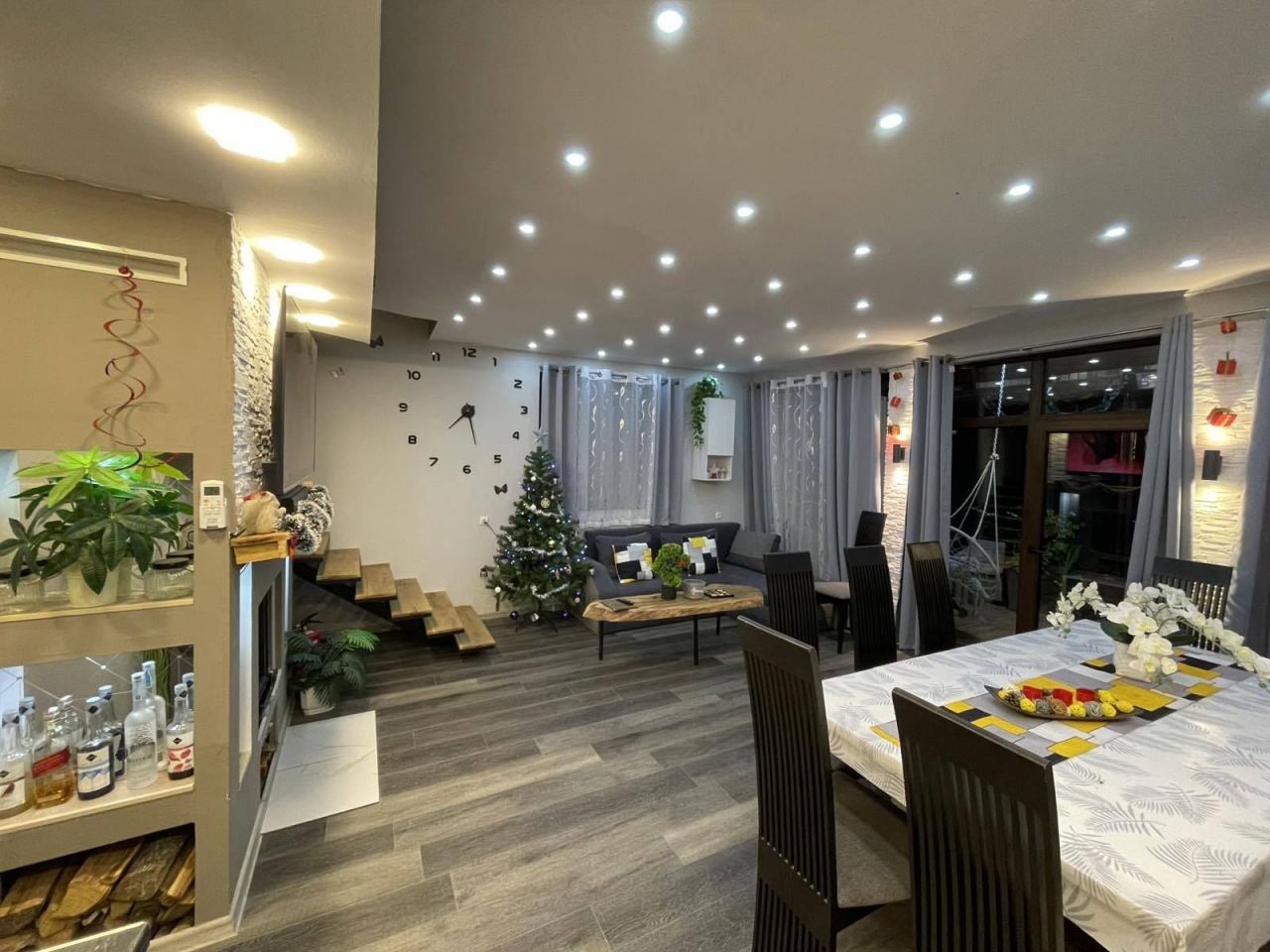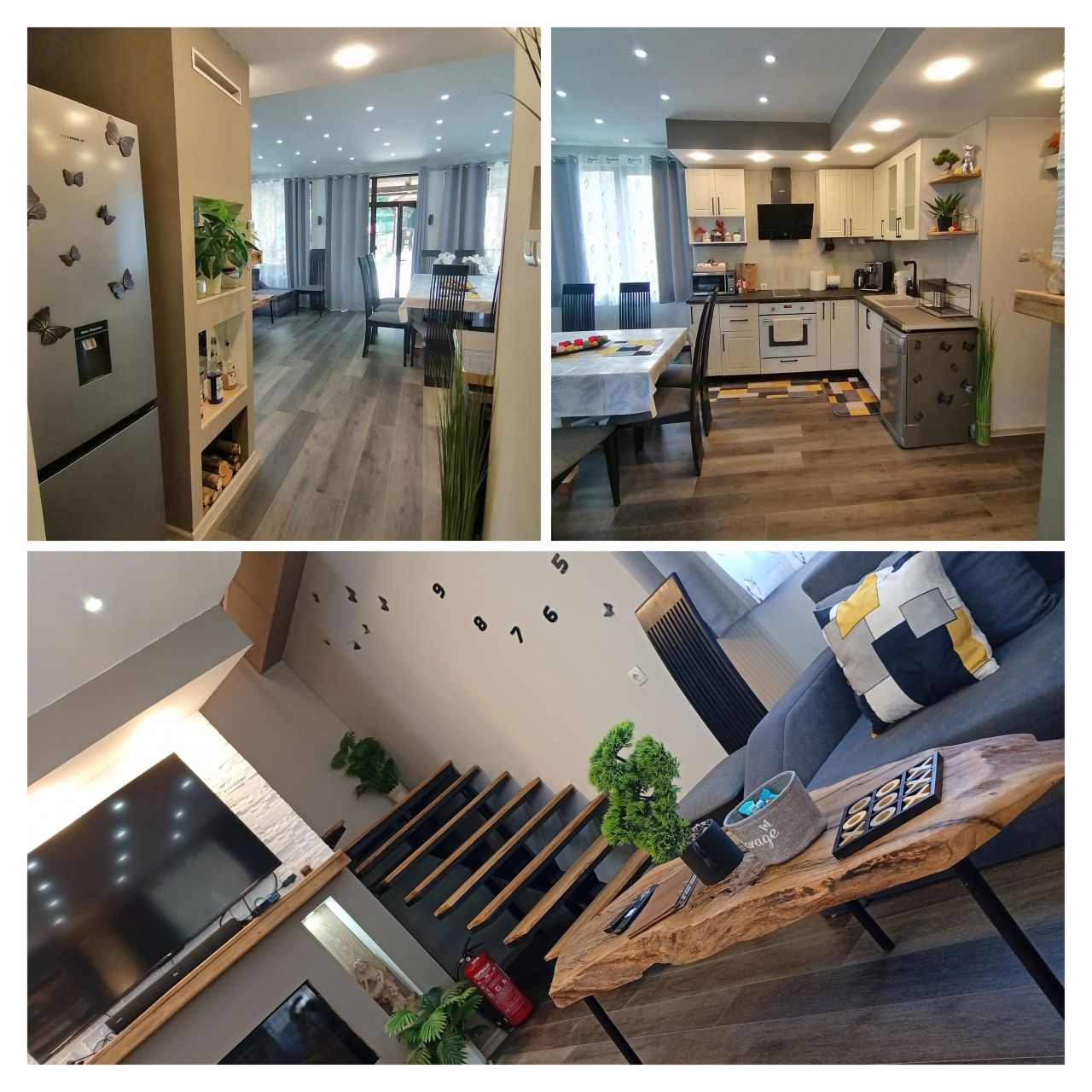 Просторната дневна с камина и напълно оборудваната кухня предлагат възможност за самостоятелно приготвяне на вкусна домашна храна в уютна атмосфера.