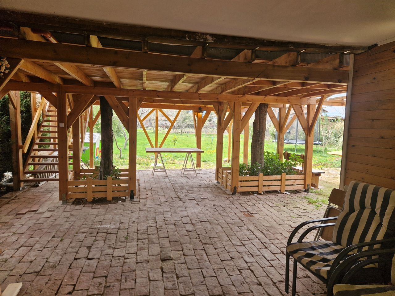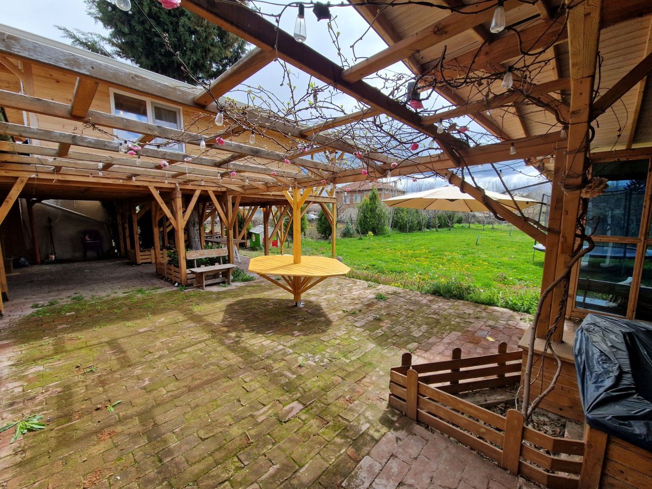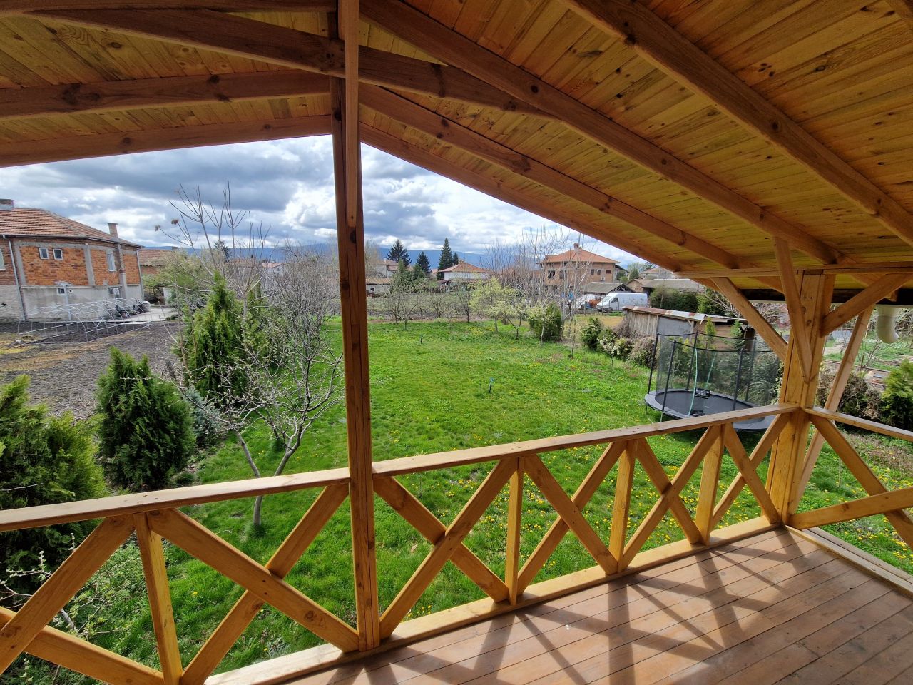 Къщата разполага с голям, просторен двор (800 кв. м) и огромна веранда (около 100 кв. м).