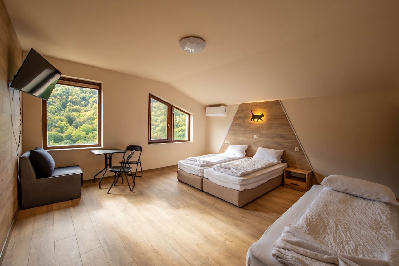 - самостоятелни 4 стаи (2 двойни и 2 тройни като във всяка има разтегателен фотьойл 70/200) с общ капацитет 14 души