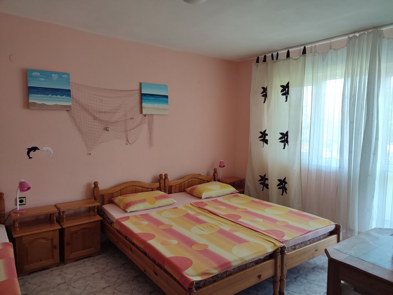 Ние ви предлагаме стаи с по две или три легла, които са оборудвани с телевизор с плосък екран и ефирна телевизия, хладилник, Wi-Fi, тераса с изглед към морето, самостоятелна баня за тройната стая и една баня на етаж специално за двойните стаи.