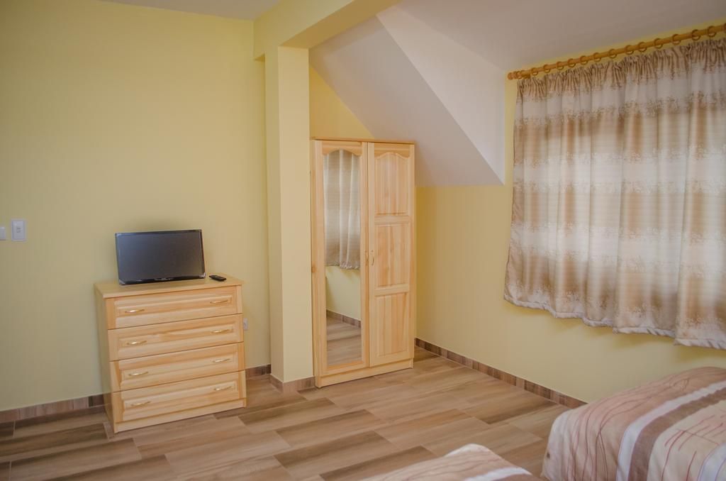 Предлага приятна атмосфера в стаи отговарящи на всички Евростандарти: всяка със самостоятелна баня, спални и с единични легла, телевизор с плосък екран с над 100 програми, интернет, климатик. Голяма тераса 60 квадратни метра с навес над по голямата част на терасата с барбекю и механа с капацитет 28 човека. Магазин за хранителни стоки на близо (30м).