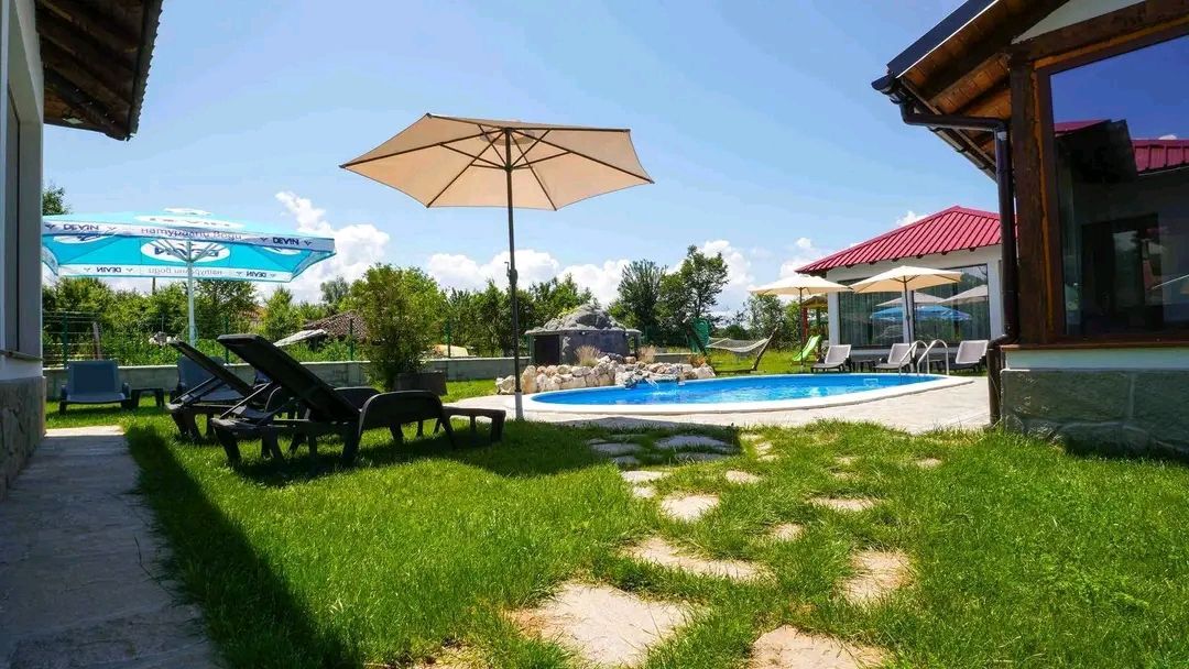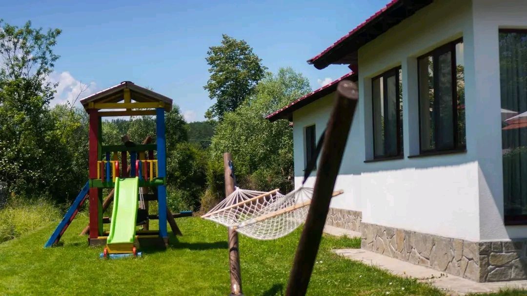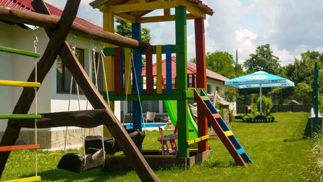 Имаме външен отопляем басейн, а за най-малките ни гости детски съоръжения - люлка и пързалка.