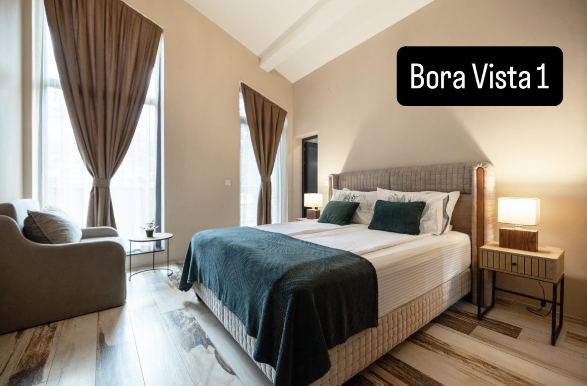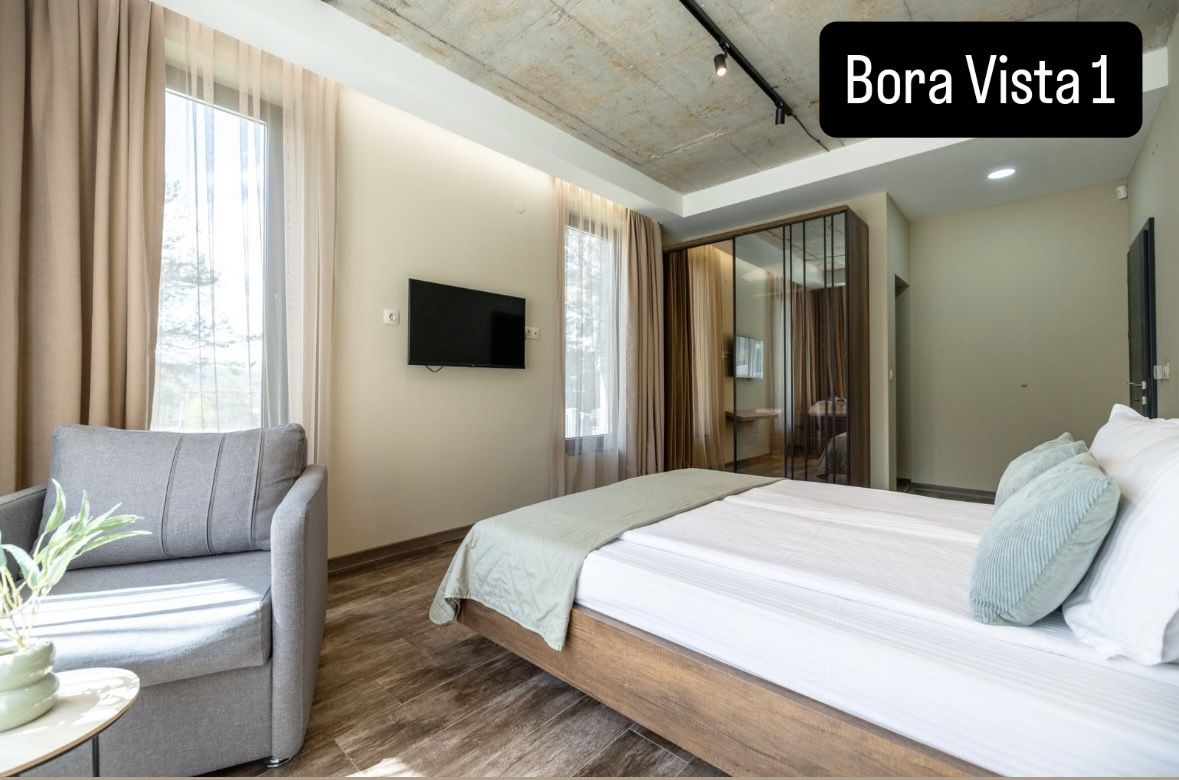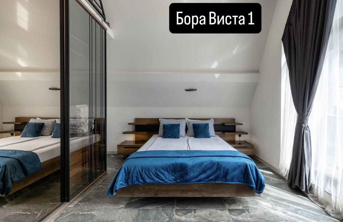 Вила Bora Vista 1 се намира в началото на планинския курорт Цигов Чарк в Родопите част от луксозен комплекс. Тя е модерна и луксозна, новопостроена е и разполага с с всички удобства. Разположена е на хълм с прекрасна гледка към околните борови гори и язовир Батак. Предлага прекрасни условия за почивка. Верандата е с мека градинска мебел пред вилата. Тя разполага с 4 просторни самостоятелни спални, всяка със собствена баня и тоалетна. Във всяка спалня има допълнителни разтегателни дивани или фотьойл. Капацитетът на вилата е 8+8 (до 16 души). Във всяко помещение има климатик, смарт телевизор и Wi-Fi. Разполагаме с две кошари за най-малките ни гости и столче за хранене. Има голяма трапезария и хол с ТV зона, подходящи, както за семейни събирания, така и за приятелски компании. Кухнята е изцяло оборудвана с всичко нужно. В двора има открито огнище със скара /и подвижно барбекю на дървени въглища/.