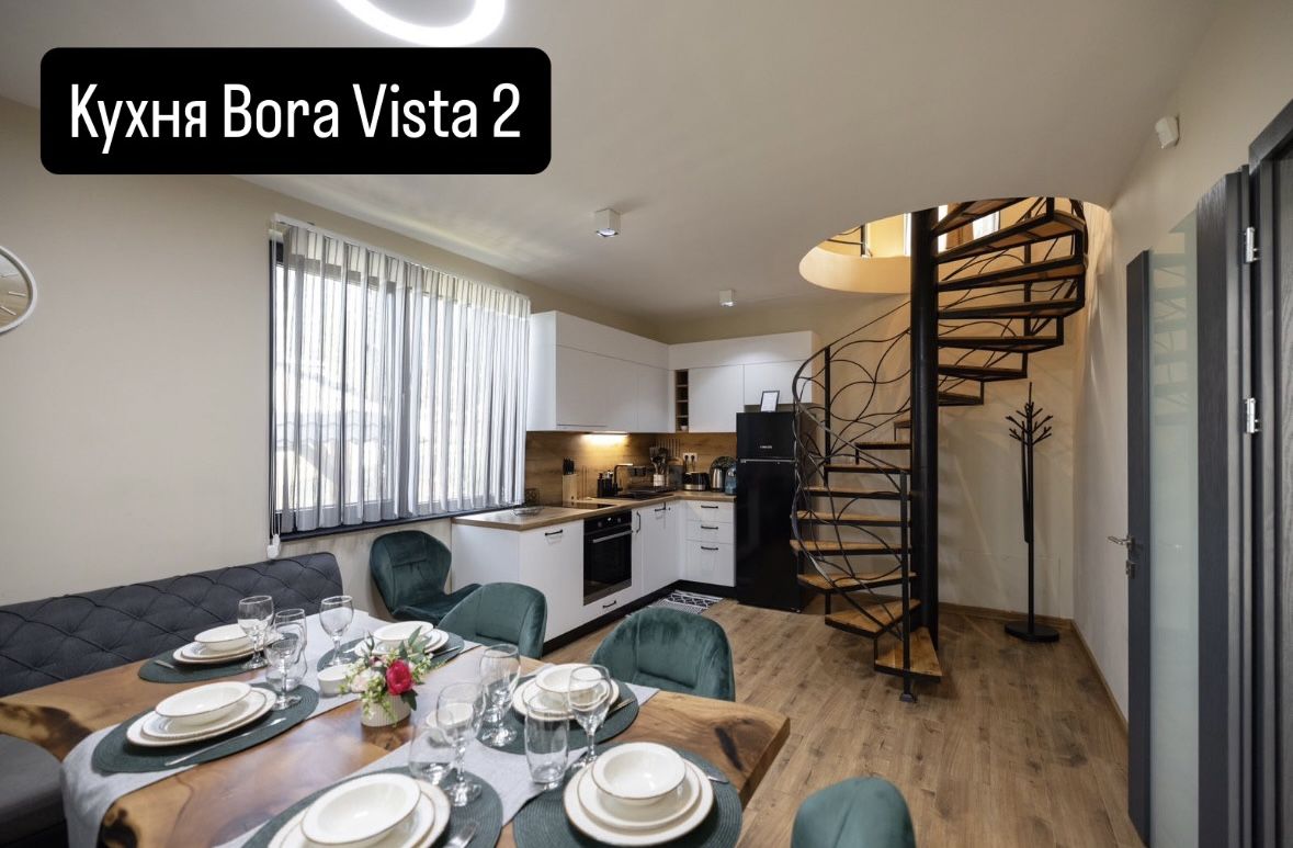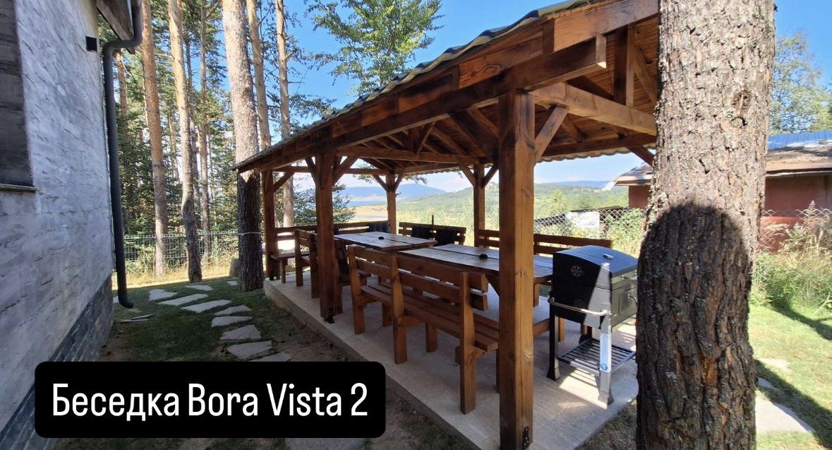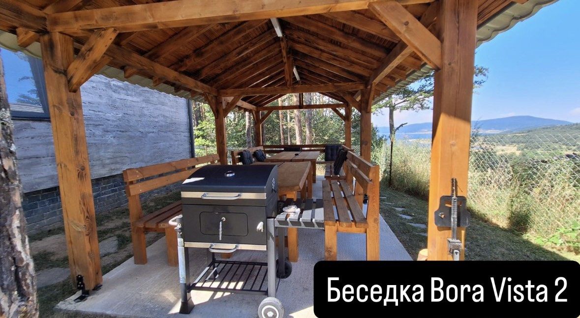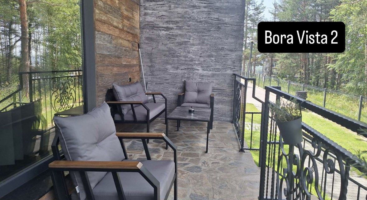 Bora Vista 2 е двуетажна вила с капацитет 7 места (4+3), подходяща за две семейства с деца или група възрастни. Част е от луксозен комплекс от 4 вили. Разполага с 2 спални, 2 бани (по една на етаж) и допълнително помещение на втория етаж с разтегателен двуместен диван /140 на 195/ и фотьойл /85 на 190/. Осигурени са Wi-Fi, телевизори, хавлии, халати и сешоари. При заявка – кошара и столче за хранене. Първият етаж включва хол с разтегателен диван и напълно оборудвана кухня. Има тераса с гледка към язовир Батак и веранда с градинска мебел и люлка. До вилата – беседка с маси, пейки и барбекю.