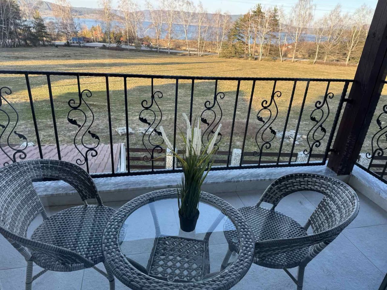 - На втория етаж са разположени 3 спални 3 санитарни възела и голяма тераса с изглед към яз. Батак. Всяка къща разполага с TV и интернет.