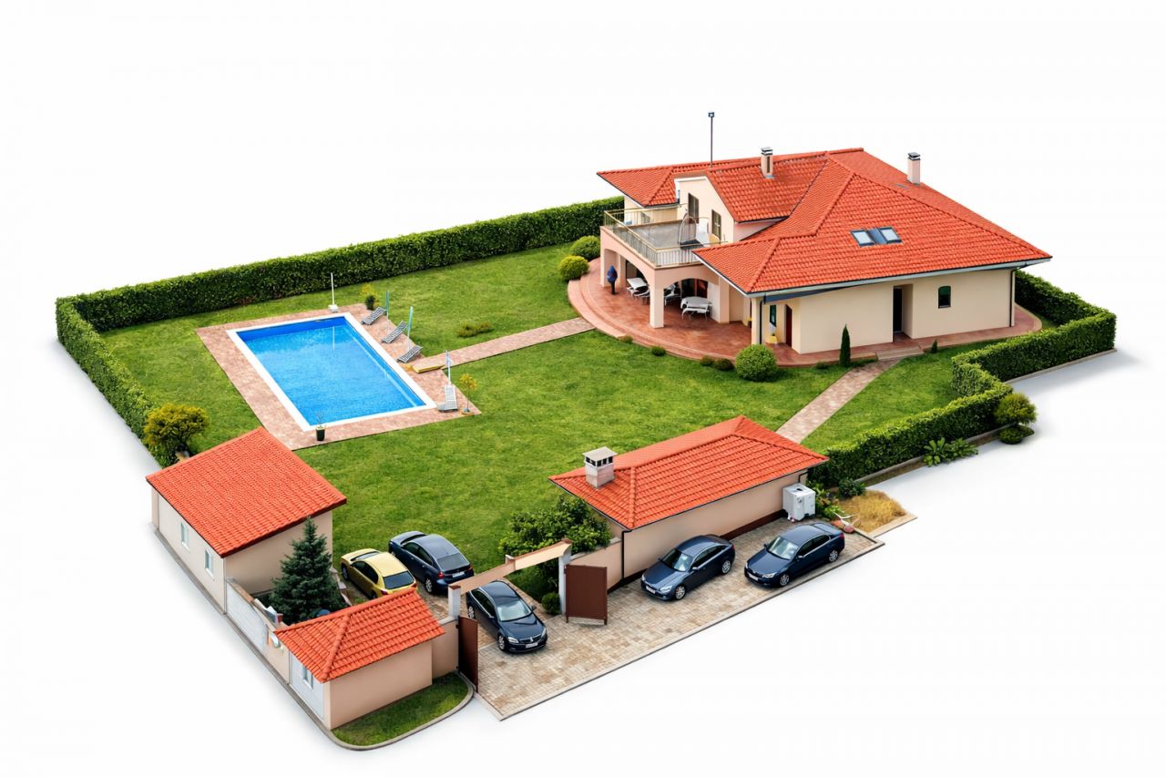 Имението включва вила на 2 етажа с над 450 кв. м застроена площ. Резиденцията разполага със 7 стаи, едната от които е ВИП апартамент, две просторни хол-трапезарии, 3 напълно обзаведени кухни, 2 големи тераси с прекрасен изглед към божествения Еленски Балкан и върховете Чумерна и Голямата Турла. Санитарни възли на всеки етаж.