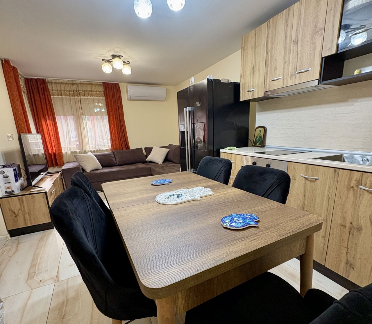 - хол с разтегатен диван за 2ма, кухня с трапезария, баня +тоалетна