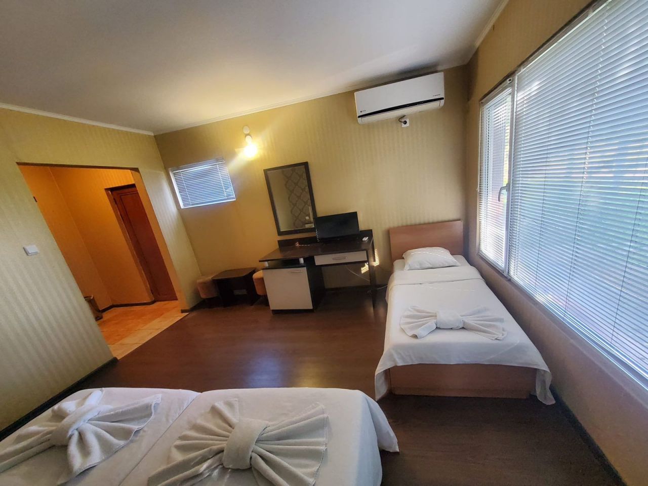 - Хотелска част, представляваща самостоятелни къщички, тип бунгала, състоящи се от комфортно обзаведени двойни или тройни стаи със санитарен възел, климатик, кабелна телевизия и интернет