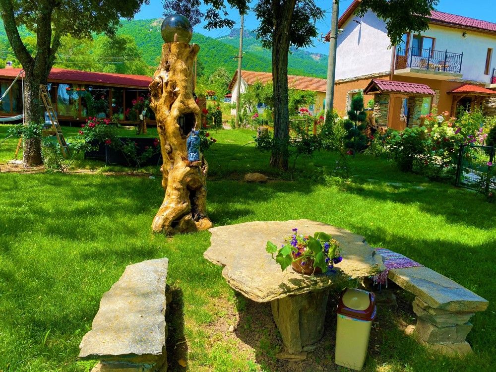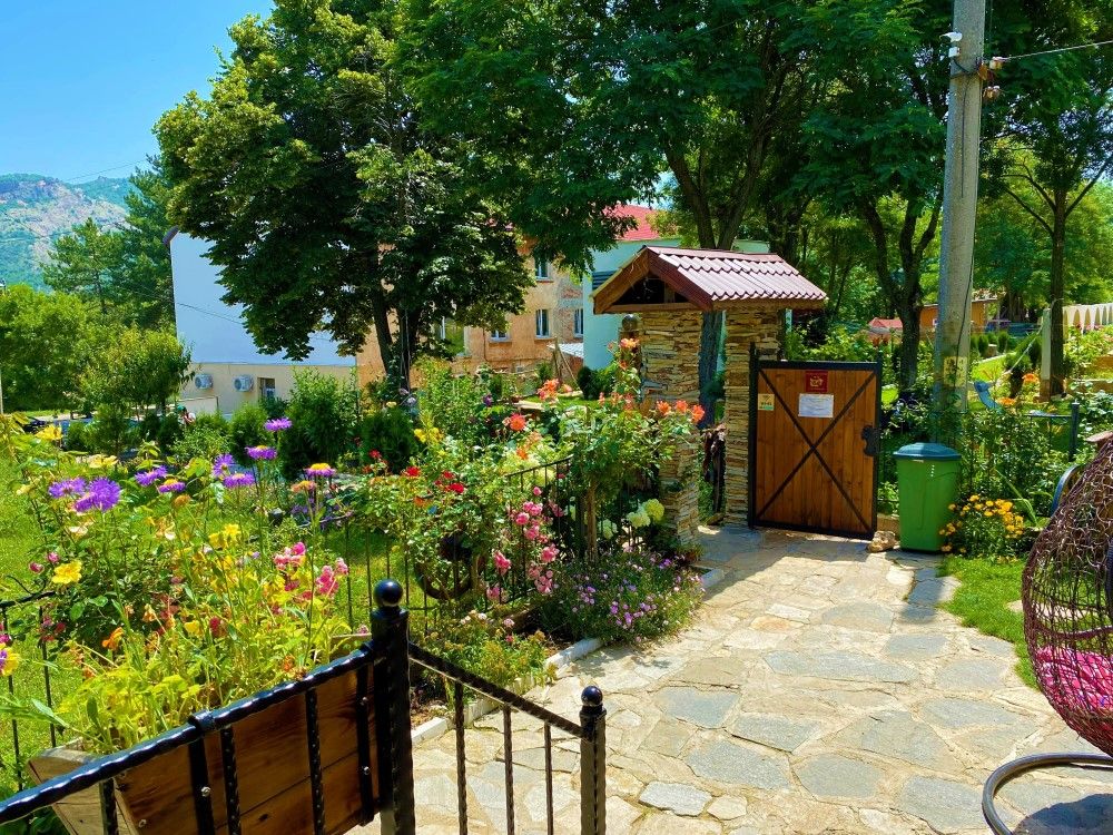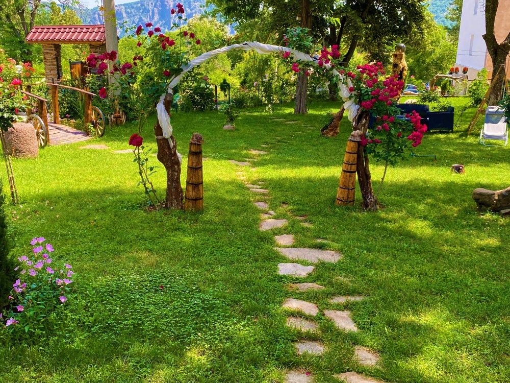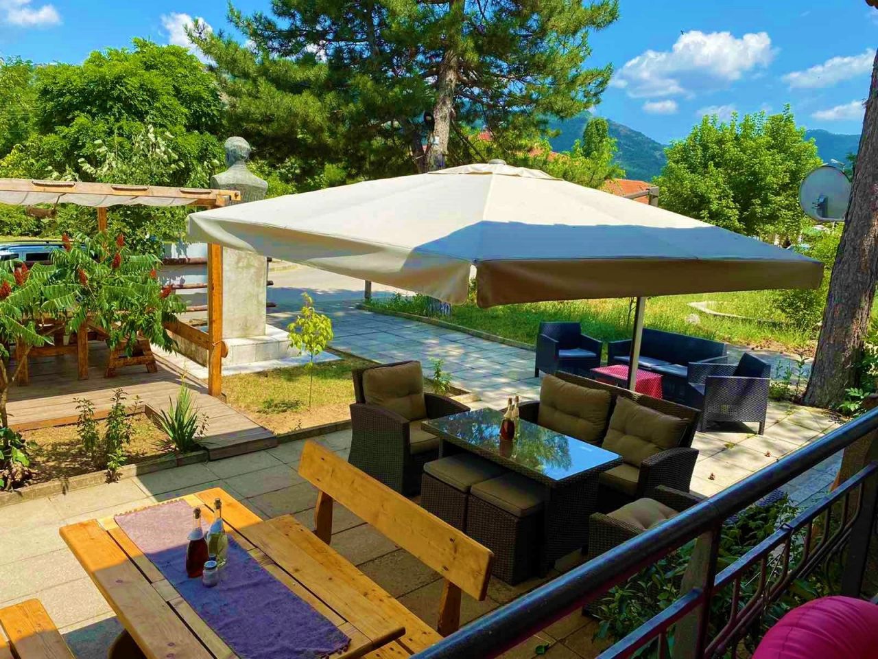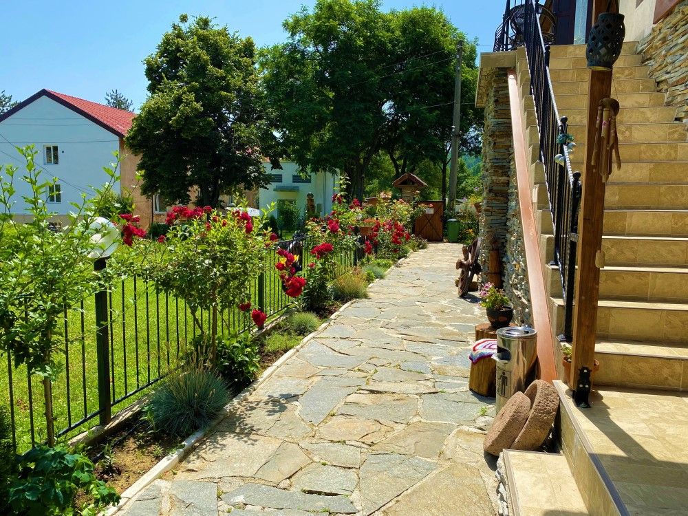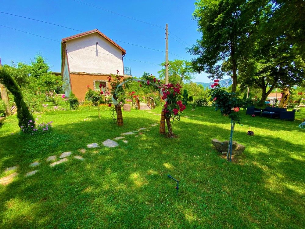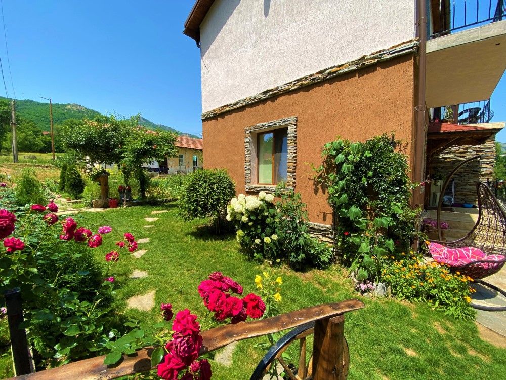 Къщата е с прекрасна гледка към планини и скали и невероятна лятна градина с много растителност и цветя.