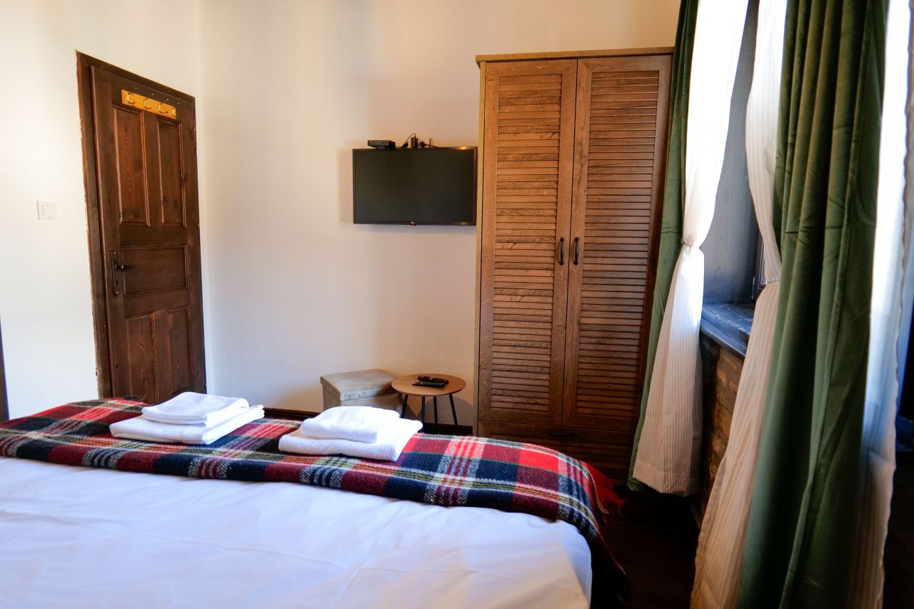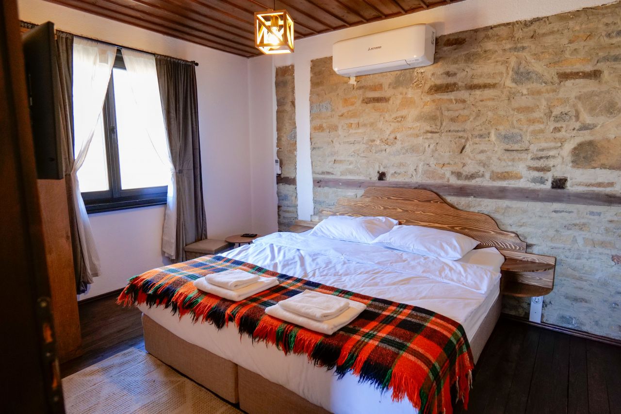 Къща 1 - най-малката къща от комплекса. Състои се от 3 спални помещения с гардероби, 3 бани с тоалетни, чардак, всекидневна и долна тераса. Двете от спалните са на втория етаж с две бани към всяка от тях. Минава се по коридор, който води до чардака, има миндер, на който да поседнете и отдъхнете. На първия етаж е третата спалня с гардероб, в близост до която е и третият санитарен възел. Всекидневната е обзаведена с бокс, който включва: хладилник, готварска печка, съдомиялна машина, кафе машина и камина . Има маса за хранене и бар за двама. В дневната има цифрова телевизия. Къщата е общо за шест човека.