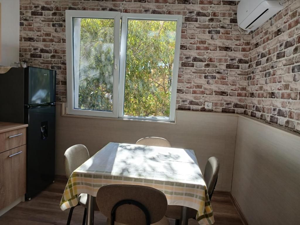 Състои се от 2 спални с големи легла, кухня с посуда, микровълнова и електрическа фурна с котлони, кафемашина и тостер.
