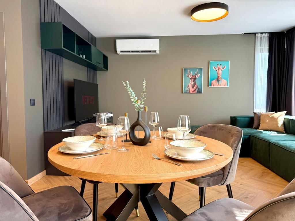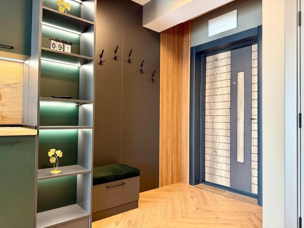 Комфортен и стилен, този красиво проектиран апартамент с една спалня и тераса се отличава с елегантна смесица от наситено зелени тонове, естествени дървесни текстури и топло осветление. Идеален за двойки, бизнес пътници или малки семейства, този луксозен апартамент предлага приятното усещане, че сте си у дома.