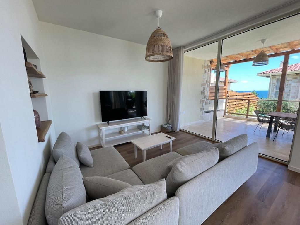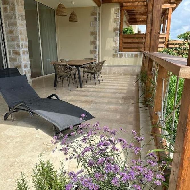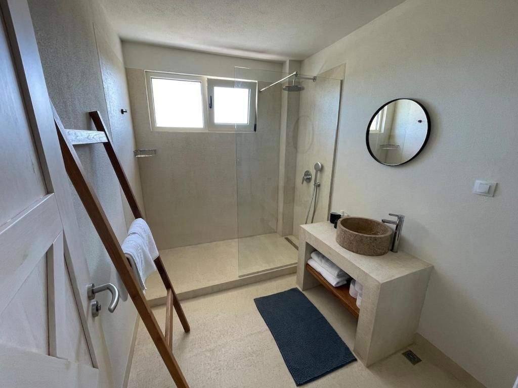 Разполага с 3 спални със собствени санитарни възли. Кокетната зелена градина обгражда частния басейн с шезлонги, голямата веранда и външната трапезария, където спокойно може да вечеряте, да се насладите на погалването на прохладния бриз и зашеметяващата гледка към морето.