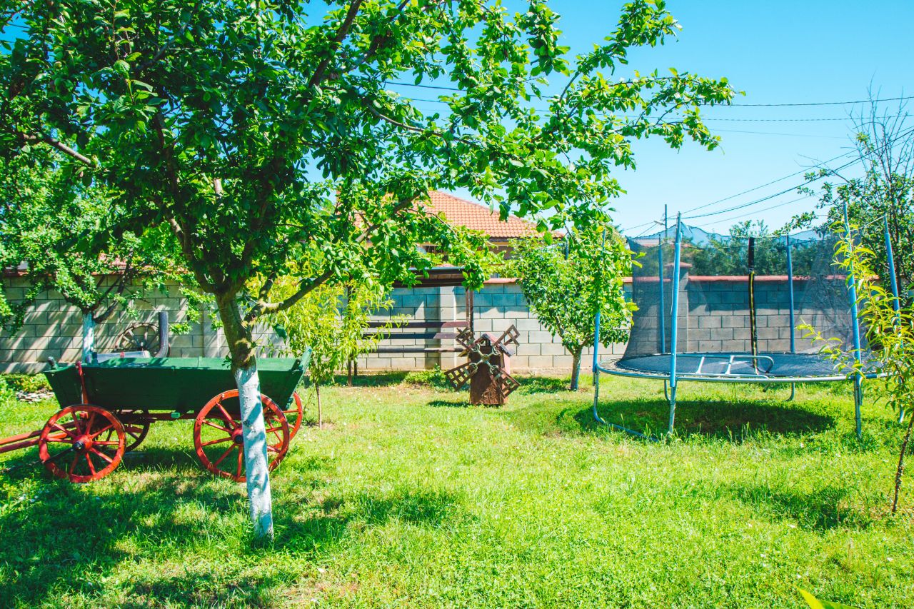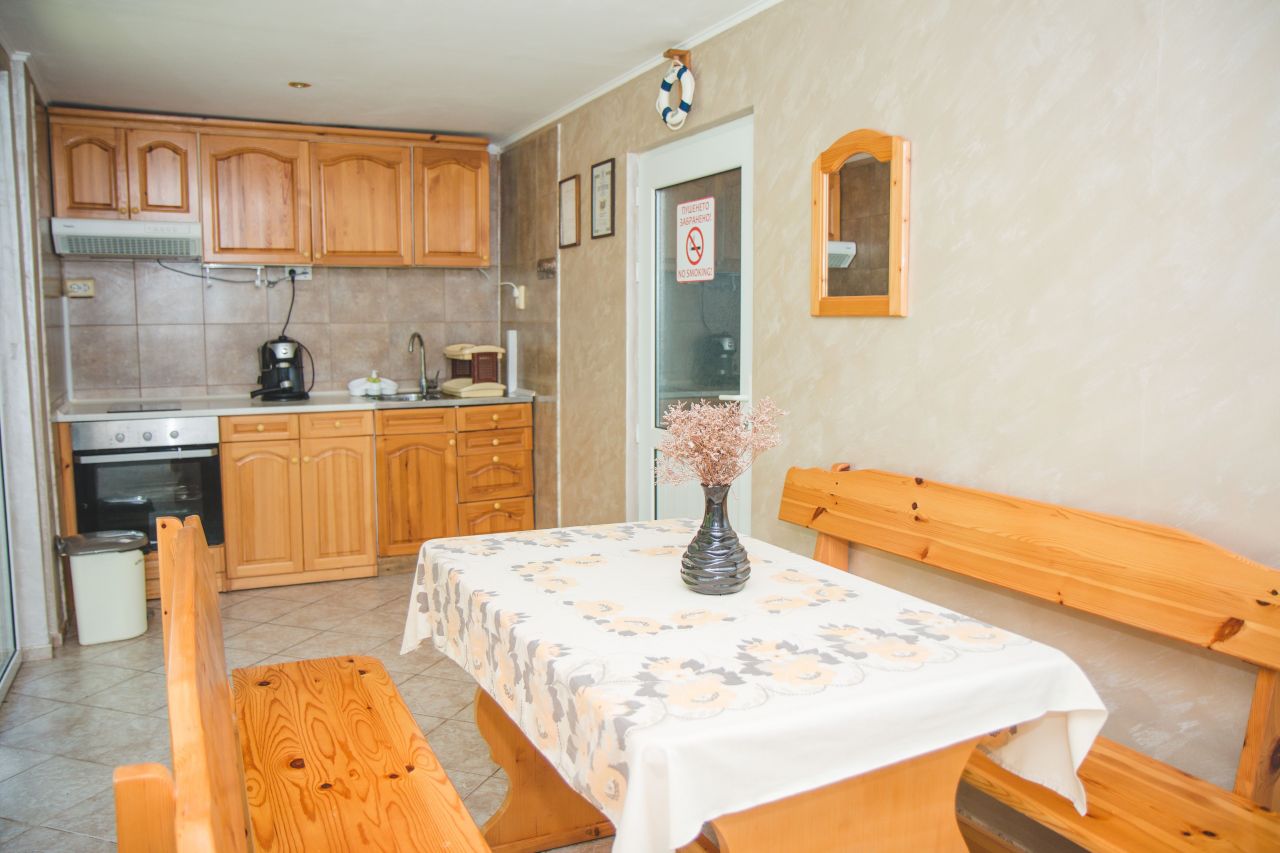 Къщата е на един етаж. Посетителите могат да ползват две стаи с по две легла и в едната стая детско легло, баня и тоалетна, цифрова телевизия, интернет в стаите, веранда с оборудвана кухня с вградени фурна и котлон, хладилник, маса за хранене на закрито и в градината.