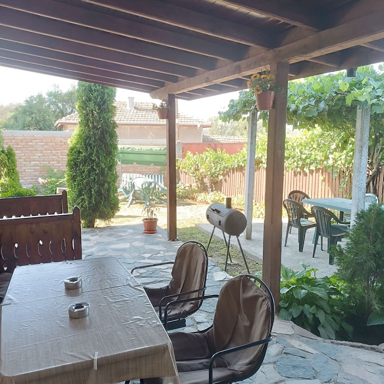 На разположение на гостите има и зелен двор с цветна градина, включващ барбекю, обособени места за почивка и паркинг за автомобили.