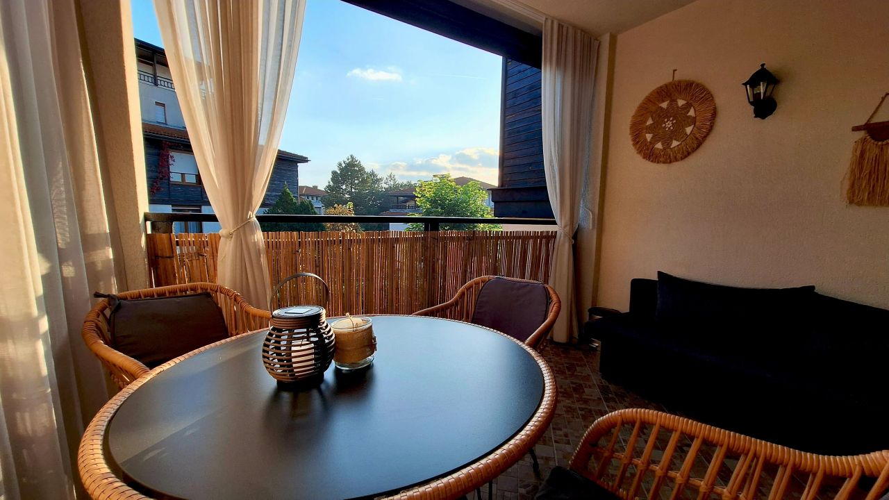 Апартаментът се намира в близост до вход/изход на комплекса – удобно за пренасяне на багаж, както и до два от най-големите басейни с джакузита.