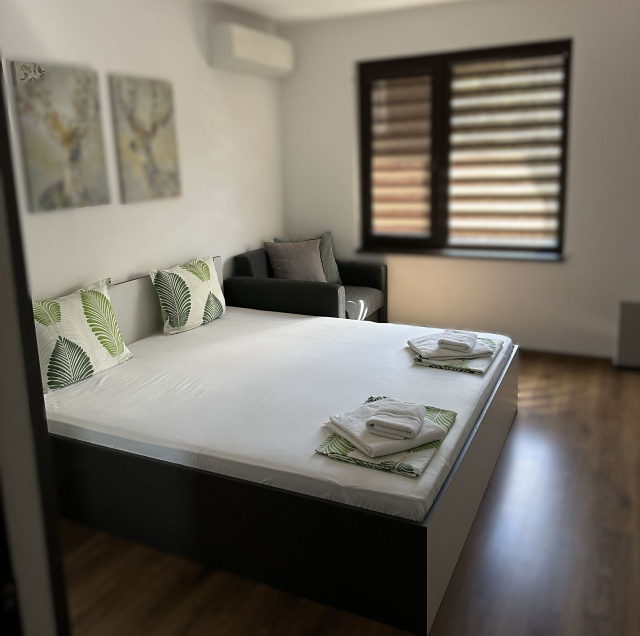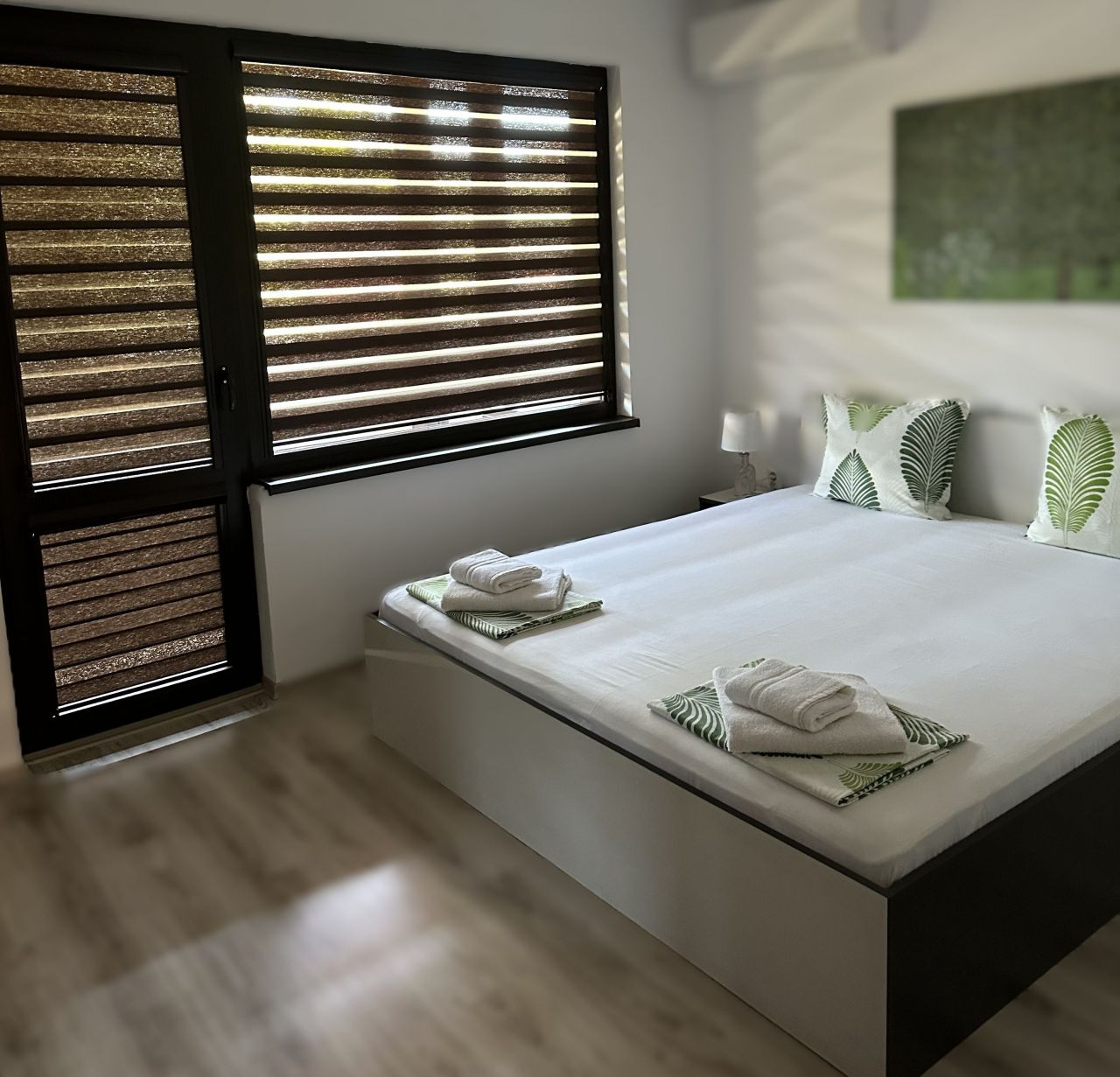 - Две спални с общ санитарен възел, едната от които има разтегателен диван;