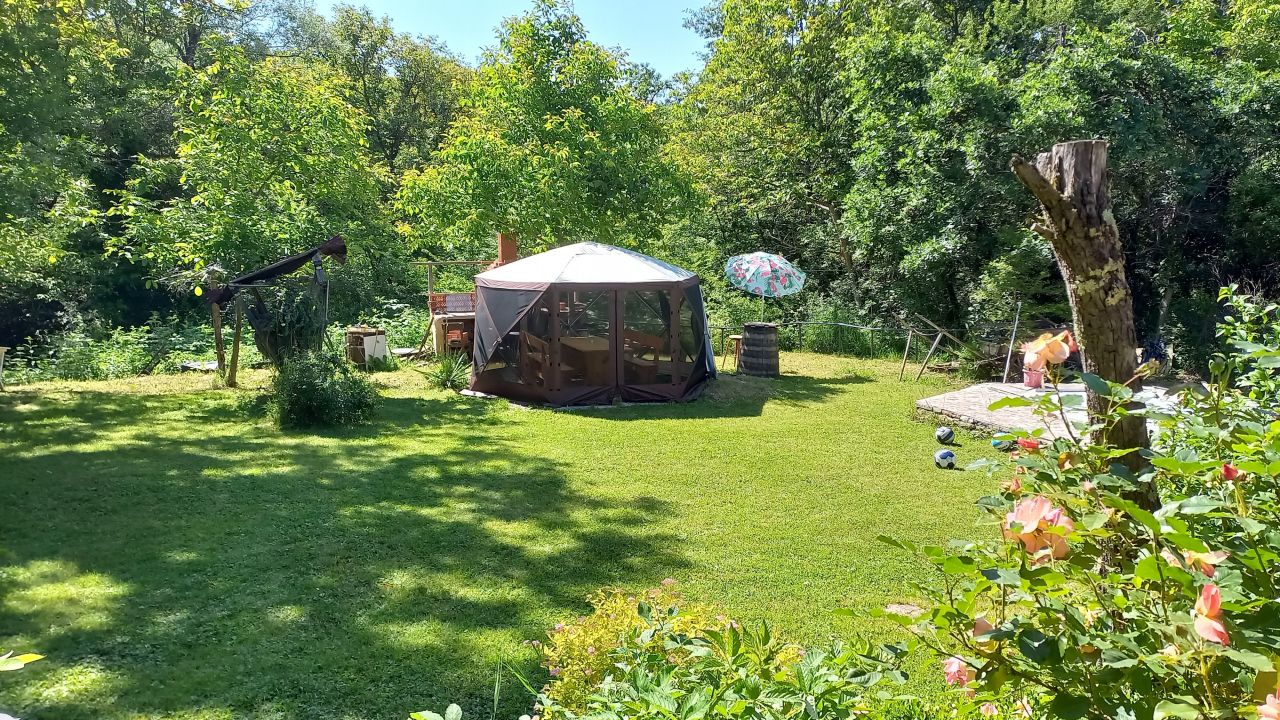 Къщата е подходяща за 4 семейства с деца, настанени в 4 стаи и обща дневна - механа.