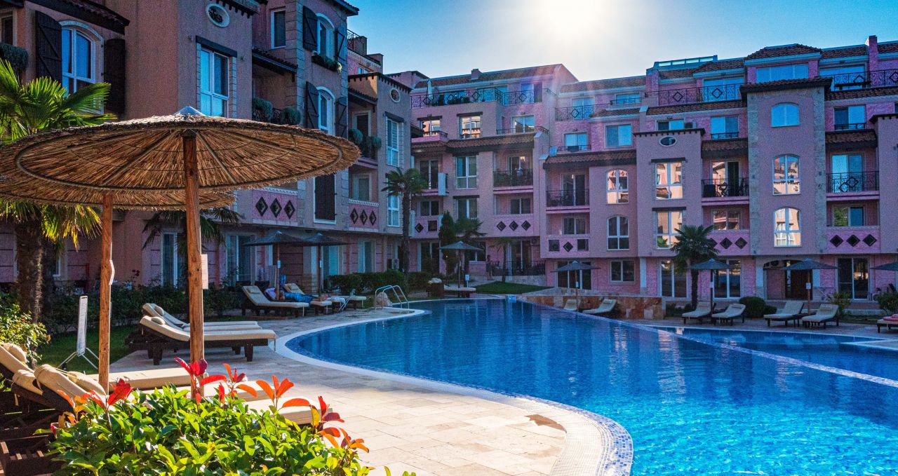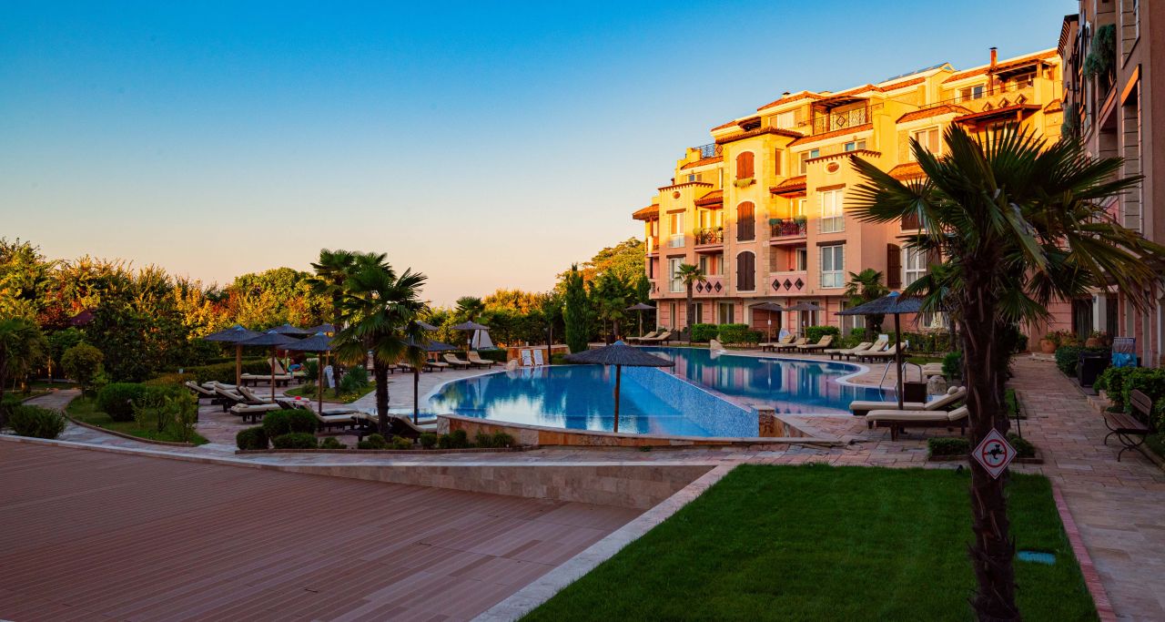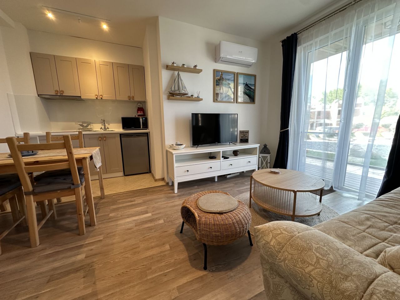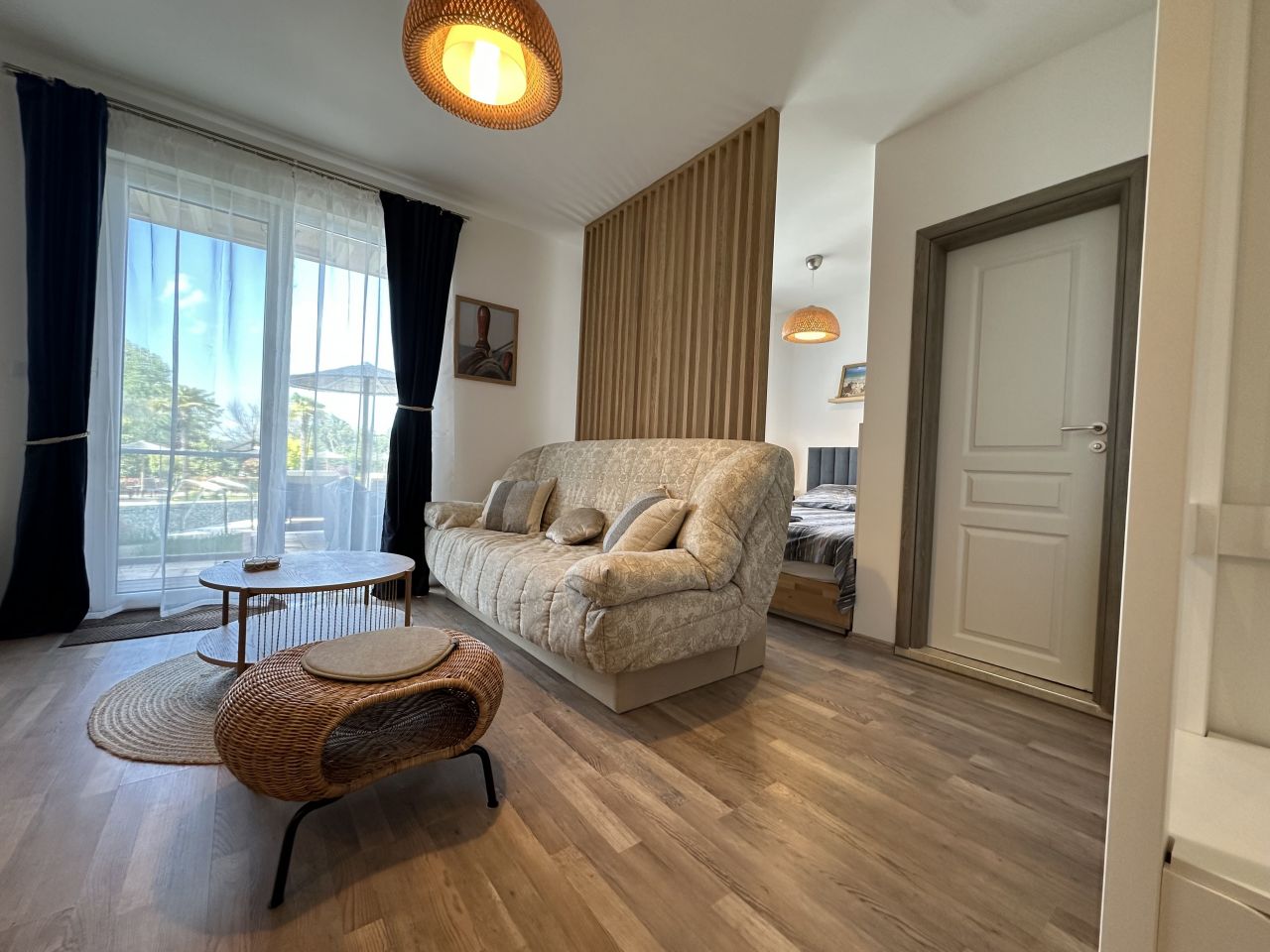 Напълно оборудвано студио с веранда и директен достъп до басейна. Първа линия на плаж Каваци. Комплекс Свети Йоан.