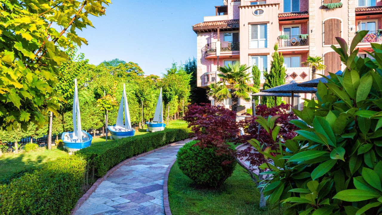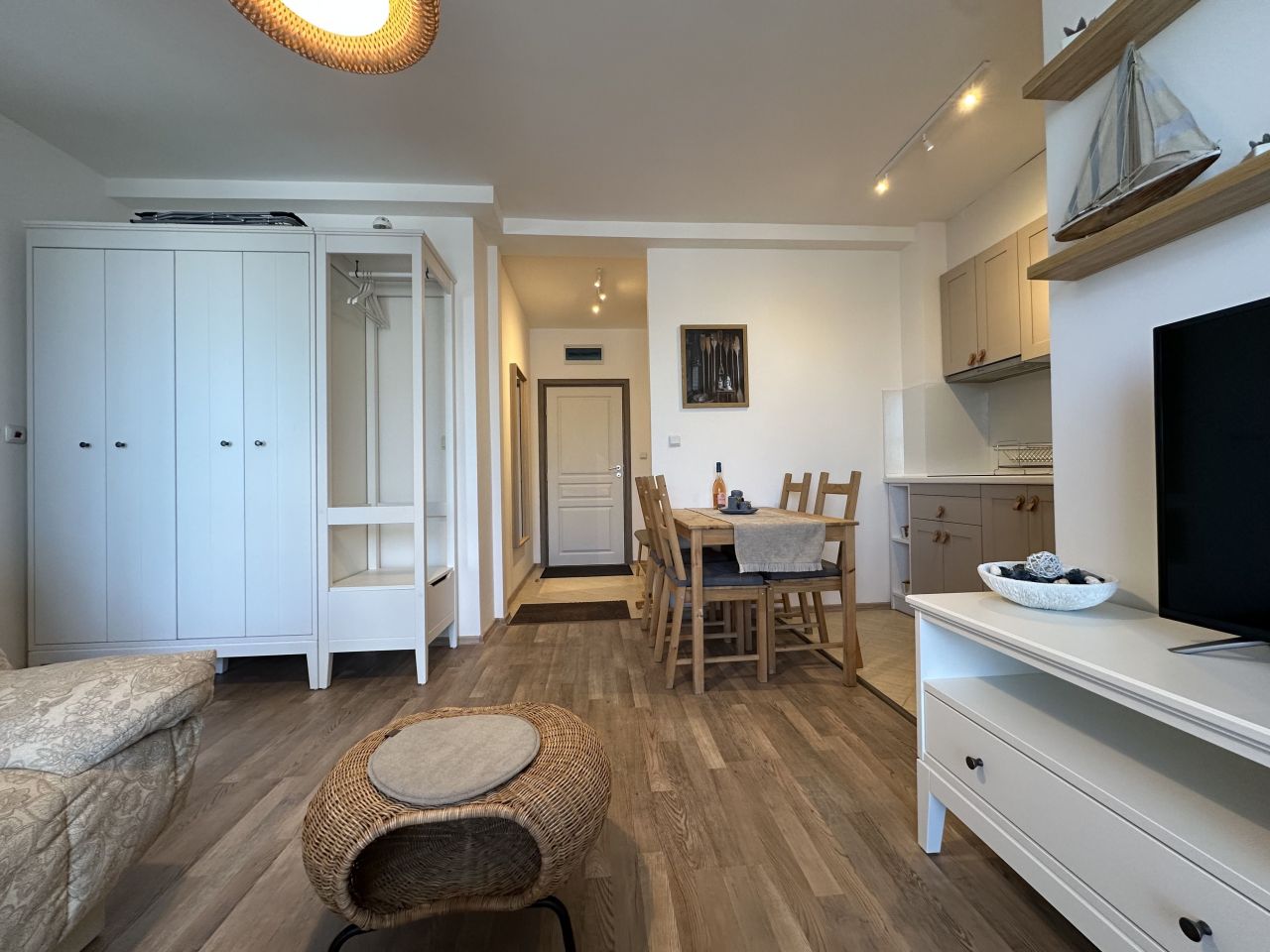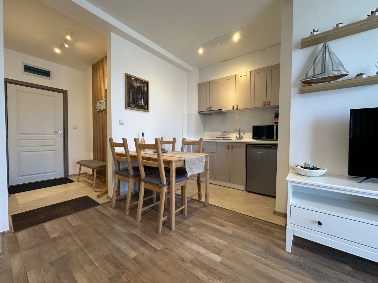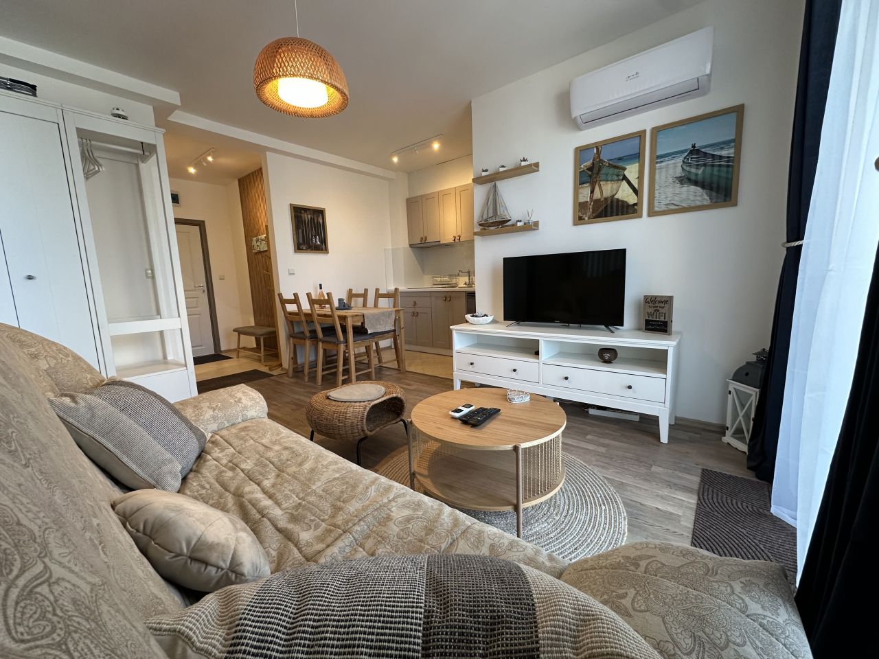 Напълно оборудвано студио с веранда и директен достъп до басейна. Първа линия на плаж Каваци. Комплекс Свети Йоан.