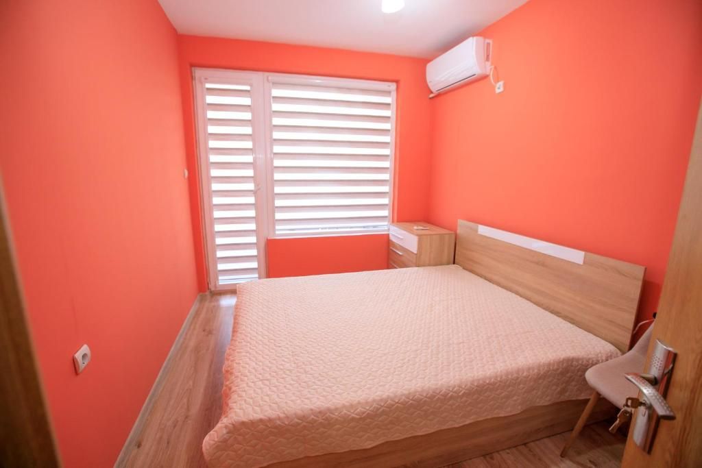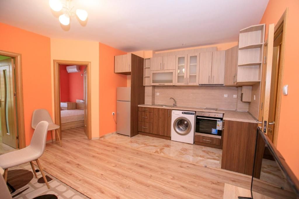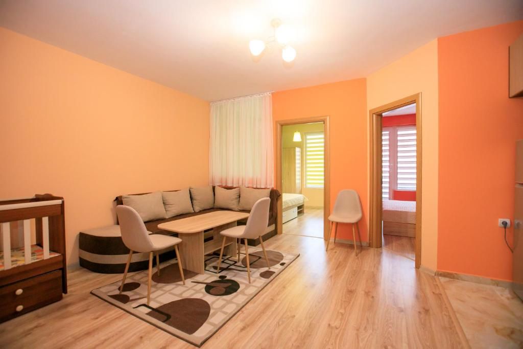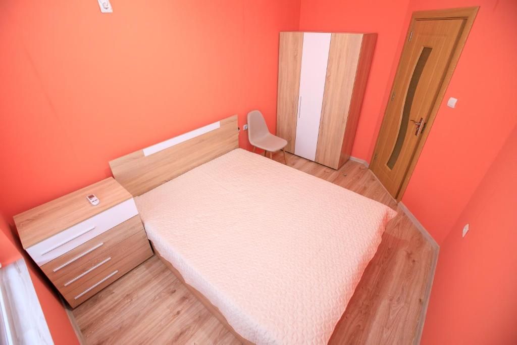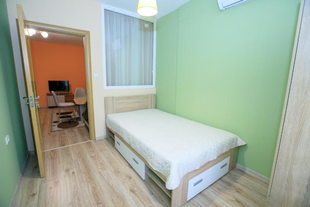 Съчетание от модерен комфорт и отлична локация, апартаментът разполага с две спални, просторна всекидневна, напълно оборудвана кухня, тераса, асансьор. За удобство на нашите гости сме осигурили бебешко креватче, пералня, микровълнова фурна, сешоар, ютия с дъска за гладене, бърз интернет и кабелна телевизия.