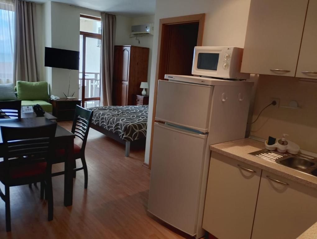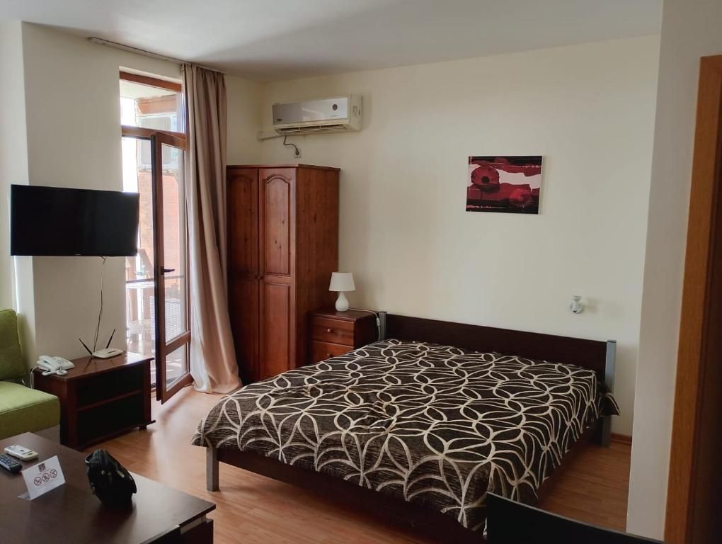 За една спокойна и пълноценна лятна почивка Ви предлагаме уютно студио (42 кв. м) в комплекс Райска градина в Свети Влас, разположен на първа линия от морето и плажа.