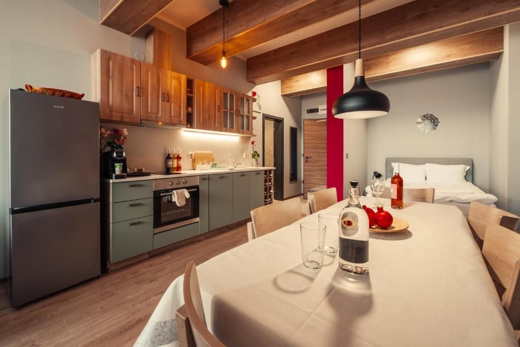 Състои се от две стаи - една самостоятелна спалня с двойно легло и втора, просторна стая, тип всекидневна, с голямо двойно легло, удобен разтегателен диван, трапезна маса и напълно оборудвана кухня. На разположение на гостите са още: тераса с пленителна гледка, просторна и модерна баня, безплатен Wi-Fi интернет и възможност за безплатно паркиране в района.