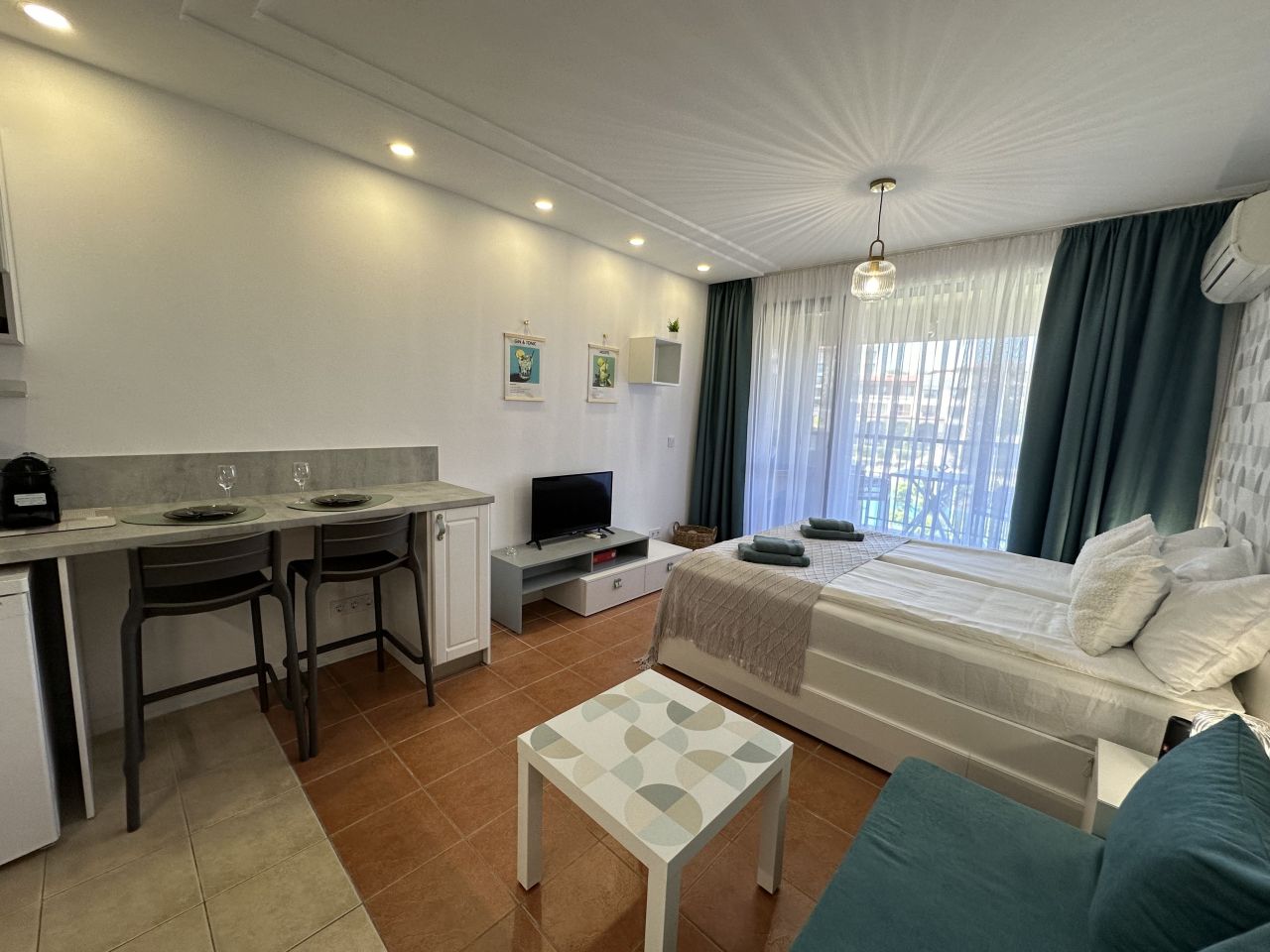 Sun Vibe Studios предлага комфортно и реновирано студио за почивка, разположено в затворен комплекс с контролиран достъп. Комплексът разполага с 4 басейна, детски площадки, ресторанти, зелени площи и зони за отдих. Непосредствената близост до плаж Смокиня го прави идеален избор за гости, които търсят спокойствие, удобство и близост до морето.