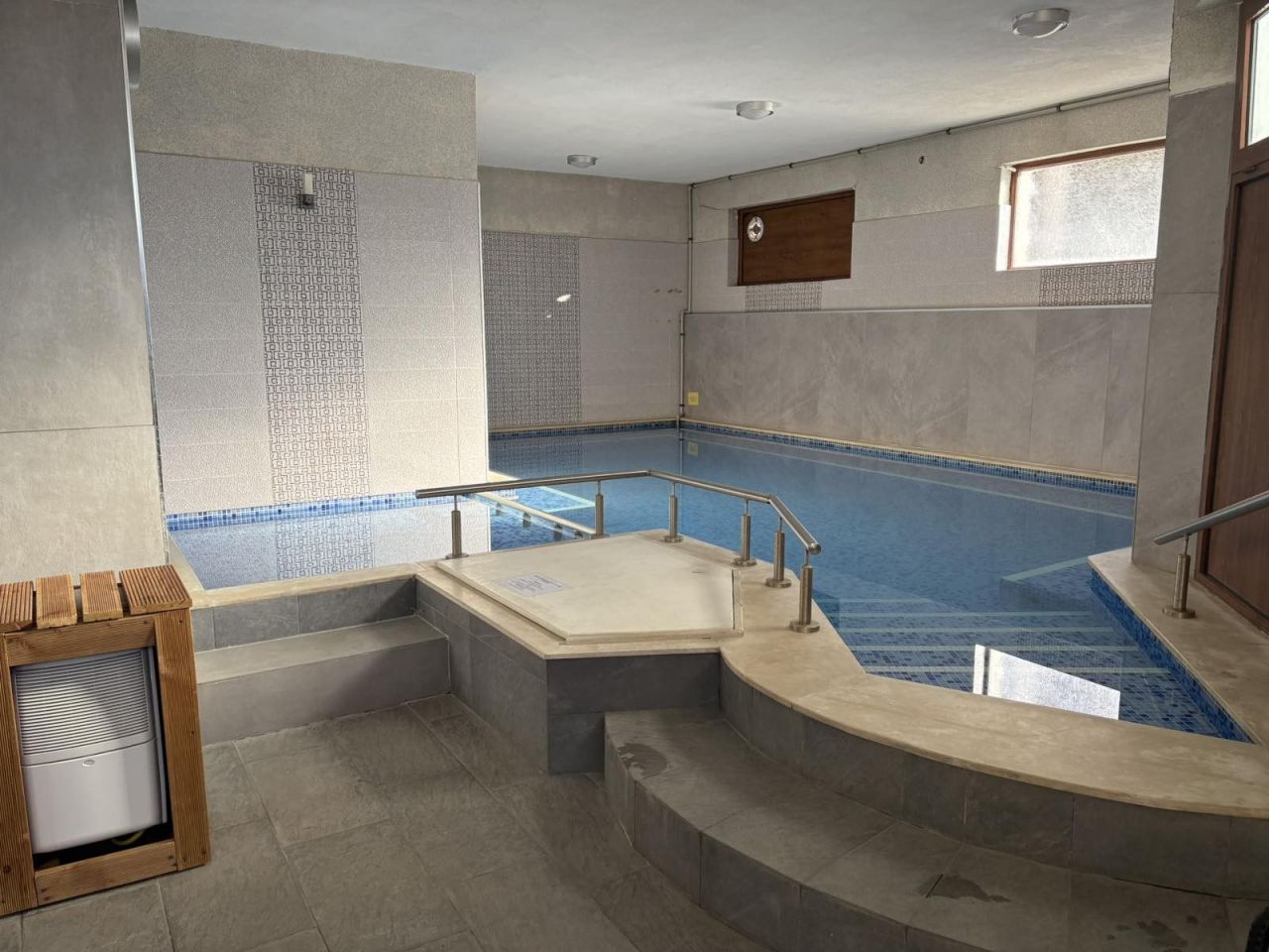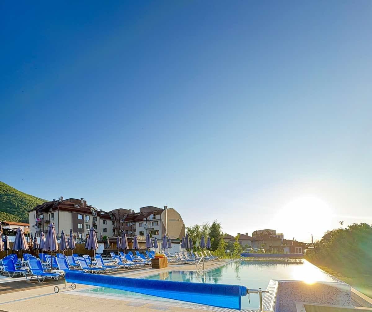 Разполагаме с два външни басейна, които работят през летния сезон и вътрешен басейн със сауна за студените дни. Всички басейни са с минерална вода. Разполагаме със собствен паркинг на място за удобство на нашите гости.