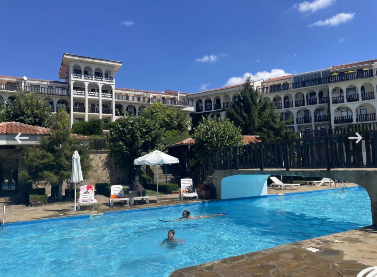 Уютен и напълно оборудван апартамент в комплекс Камбани 1, разположен в Свети Влас – перфектното място за спокойна семейна почивка между море и планина. Комплексът се намира в изключително тих и спокоен район, само на 5 минути пеша от Нов плаж (зона Изток) и Марина Диневи.