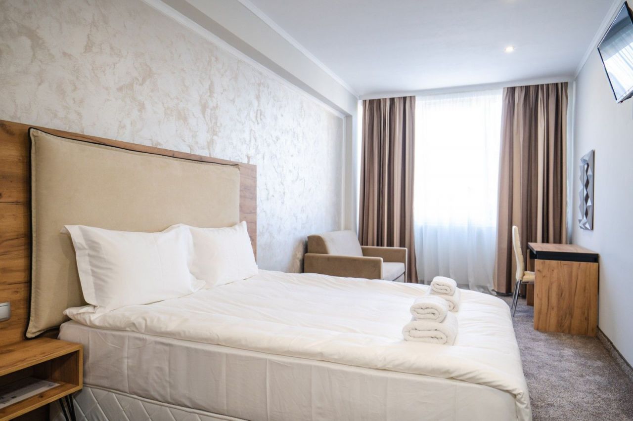 За пълноценната ви почивка сме осигурили комфортни легла, пухени завивки и луксозно спално бельо. Всички стаи са оборудвани с климатик, LED телевизор, хладилник, самостоятелна баня, телефон с вътрешна линия за директна връзка с рецепция.
