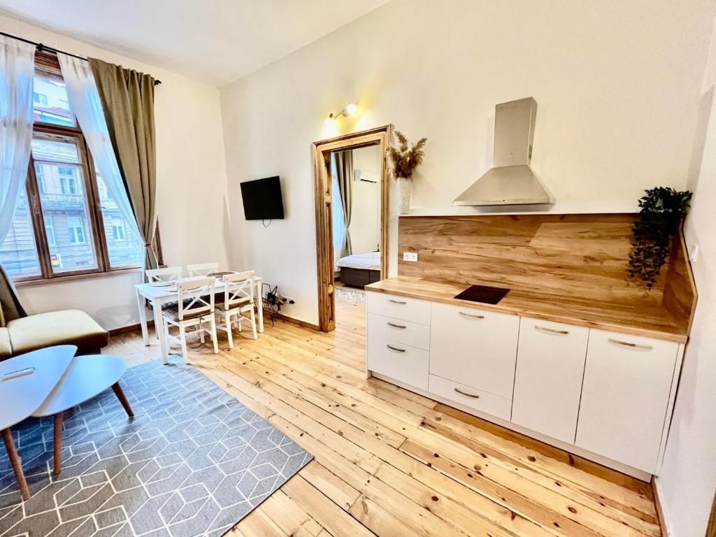 Апартаментите се отличават с просторни интериори с високи тавани и невероятна ретро атмосфера, съчетаваща очарованието на миналото с модерни удобства за едно наистина незабравимо изживяване.