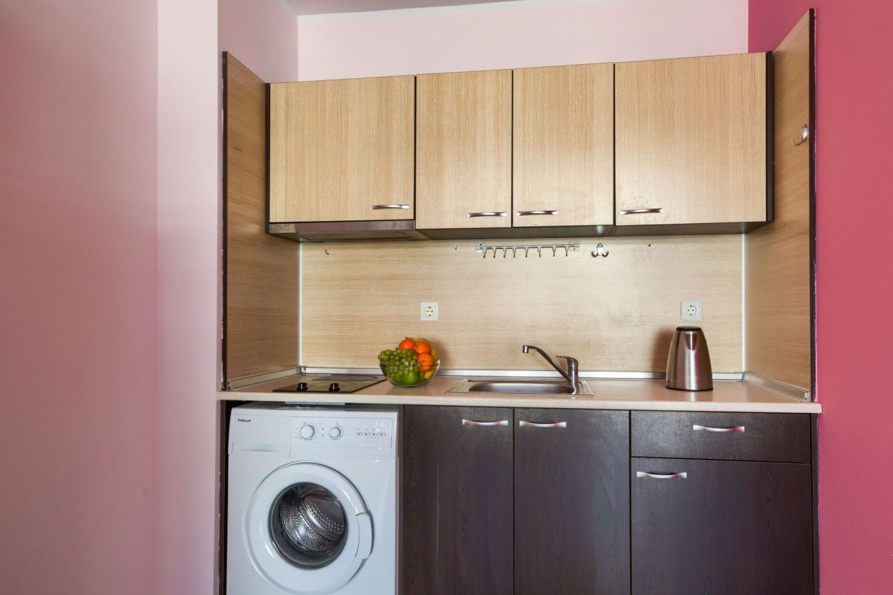 Апартаментът е отлично и напълно обзаведен, оборудван и готов за ползване. Състои се от входно антре с портамно и гардероб, хол с трапезарна и кухненска част, просторна спалня, прекрасна обща за двете стаи тераса, баня с тоалетна.