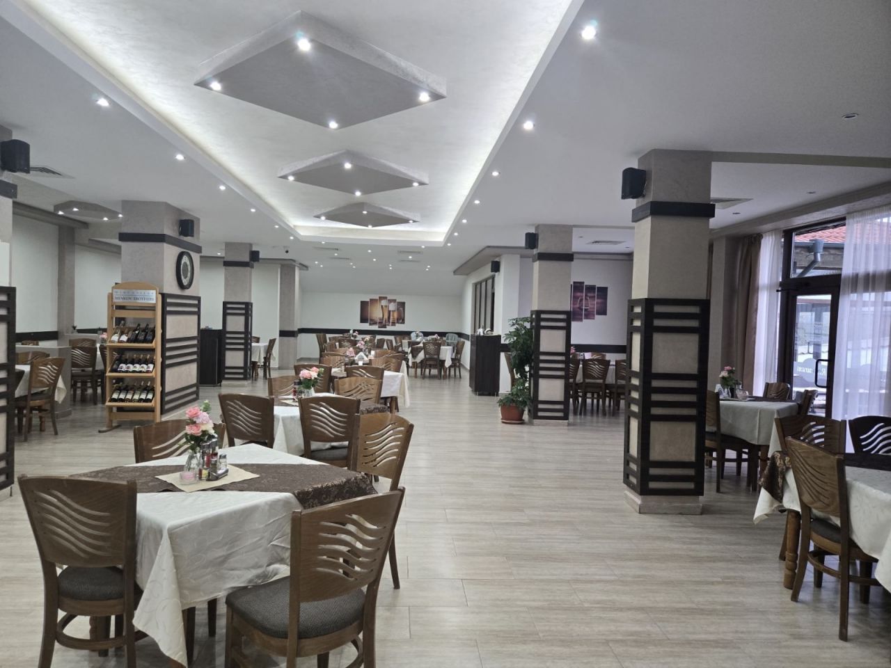 Комплексът предлага просторен ресторант с капацитет от 100 места, където можете да се насладите на вкусни специалитети от българската традиционна кухня, внимателно приготвени от нашите готвачи, както и детски кът, за забавление на малките ни гости. Ресторантът е идеален за вашите фирмени и частни партита, сватби, абитуриентски вечери, рождени дни и др.