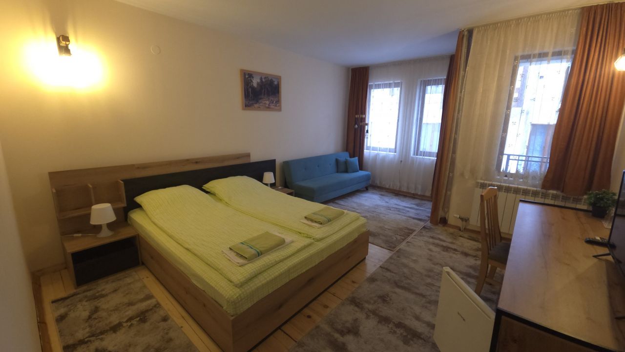 Предлага два апартамента, три двойни стаи и една единична – хотелски тип.