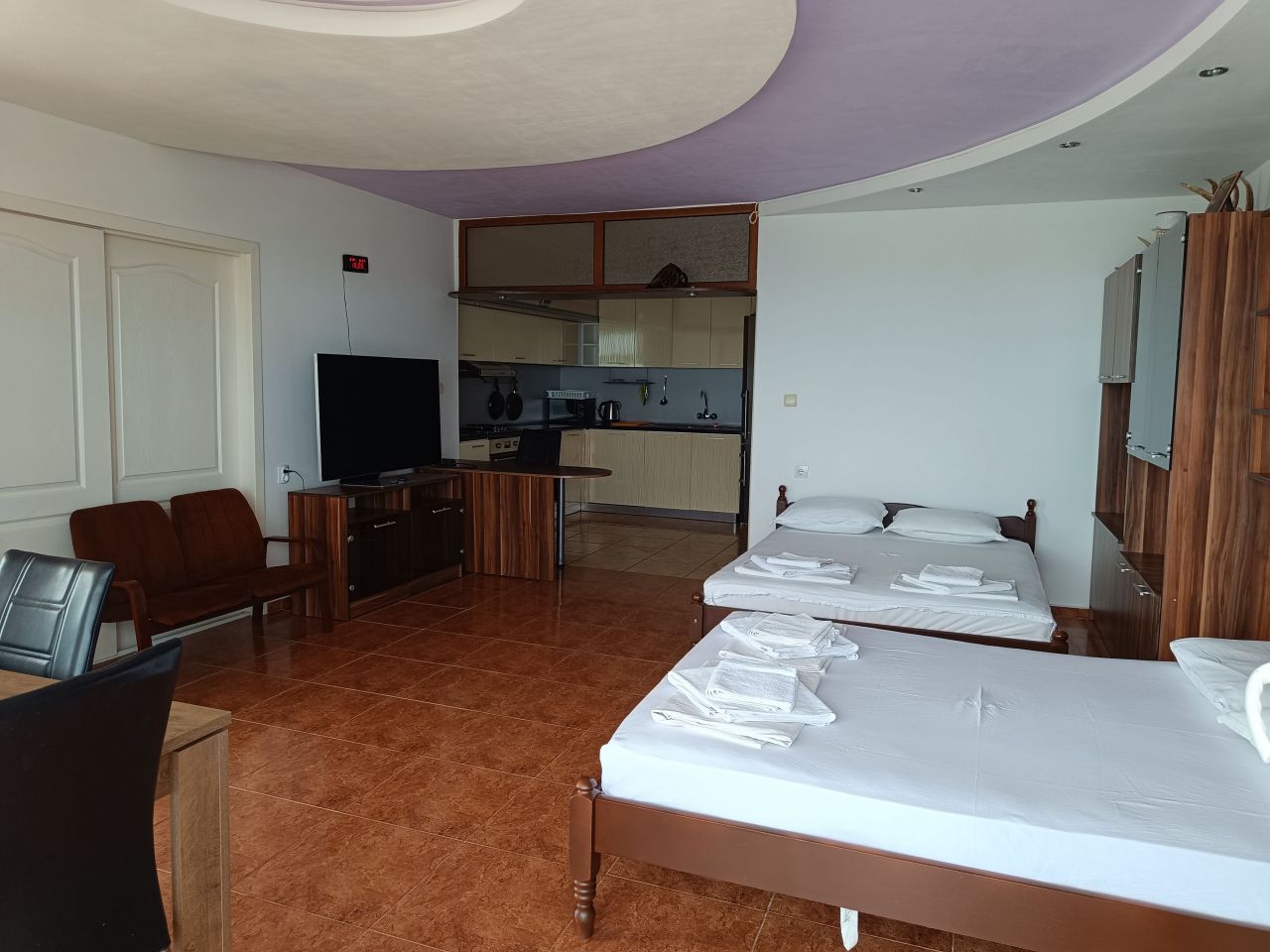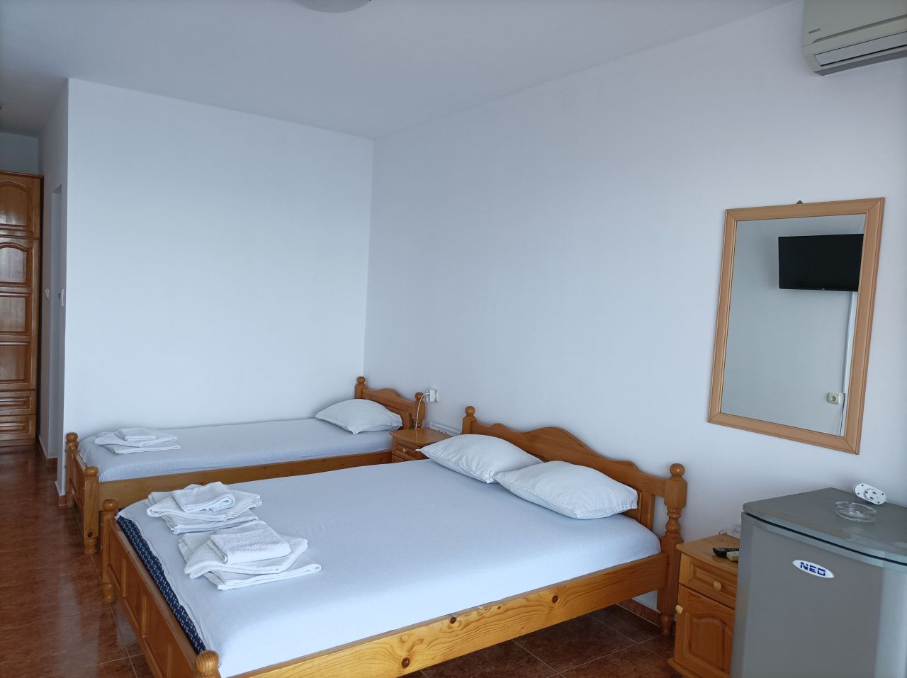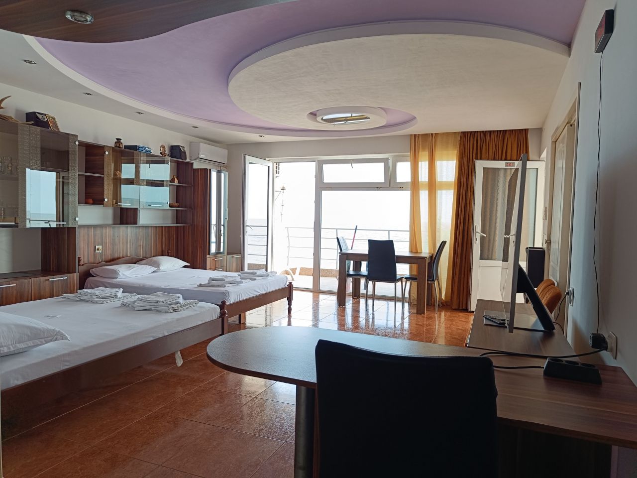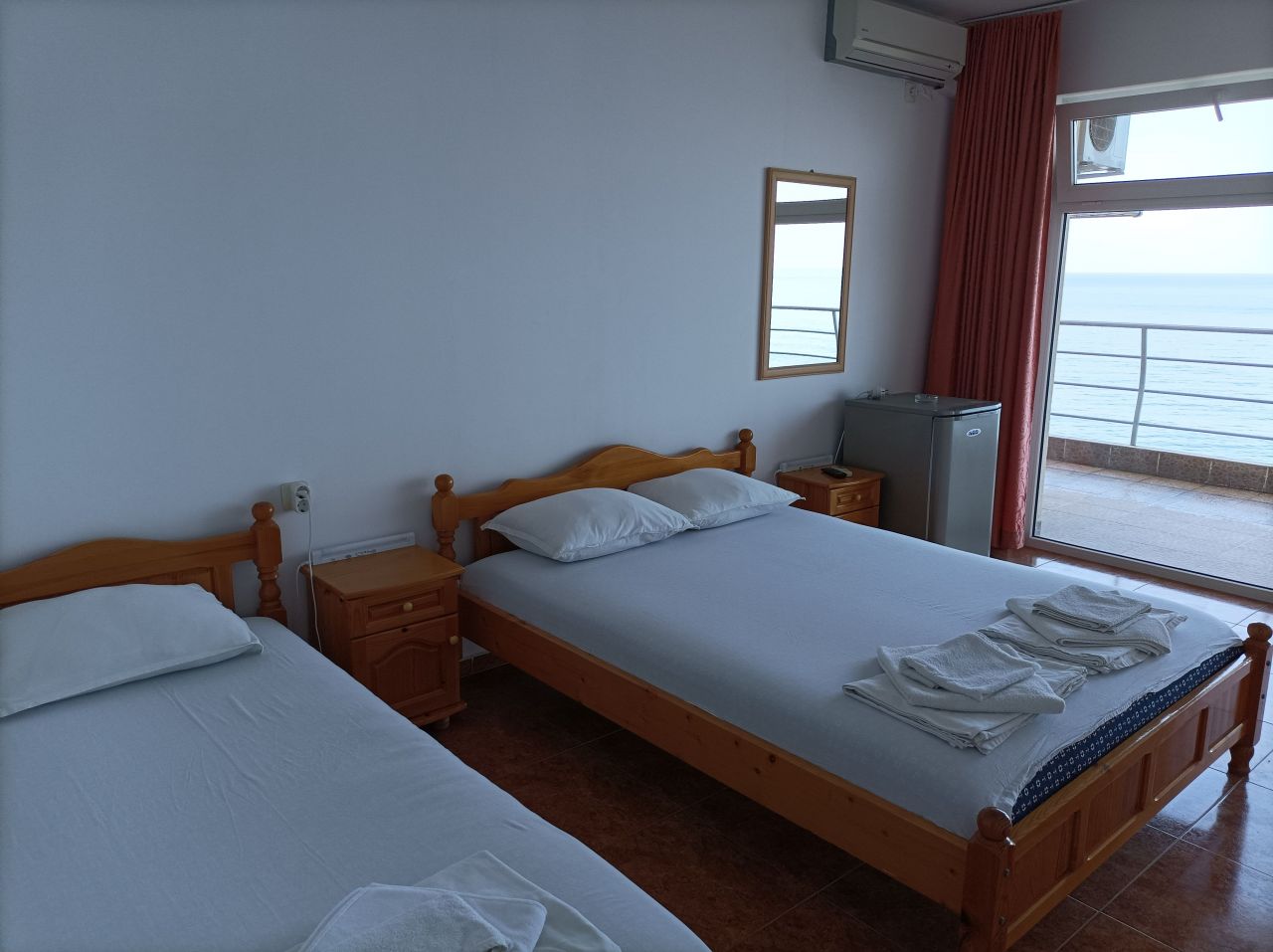 Всички стаи са с гледка към морето, просторни са и имат френски прозорци, за да можете да се любувате на морето, дори и докато сте в леглото, а гледката е неповторима.