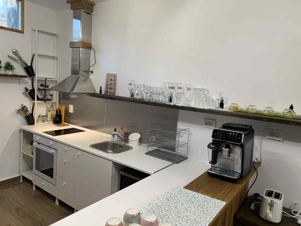 - Напълно оборудвана кухня - електрически котлон, електрическа фурна, кафе машина, термокана, съдомиялна, микровълнова фурна, хладилник с фризер, фризер за напитки, готварски принадлежности и посуда и пълен комплект за хранене.