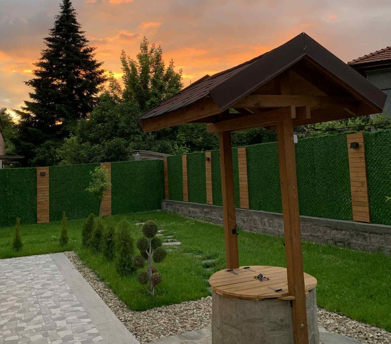 - Уютен двор с фурна - пещ, скара и голяма маса за хранене на открито.