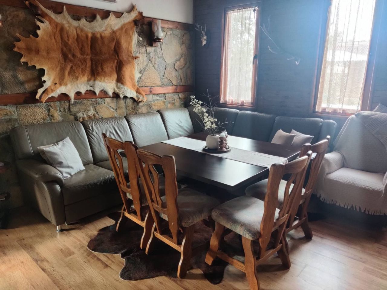 Къщата разполага с четири спални помещения, две бани с тоалетни, просторна всекидневна с камина и кухненски бокс, оборудван с всичко необходимо за подготовка на вашата трапеза.
