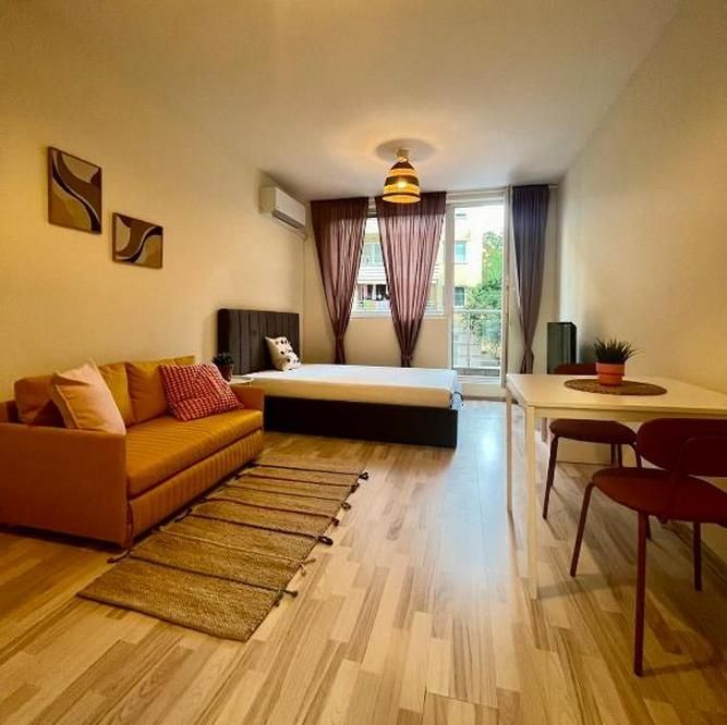 Това модерно студио със самостоятелен балкон предлага стилен, комфортен и удобен престой на едно от най-добрите места в София. С уютно обзавеждане, топ удобства и лесен достъп до града, то е идеално както за кратки, така и за дълги престои.